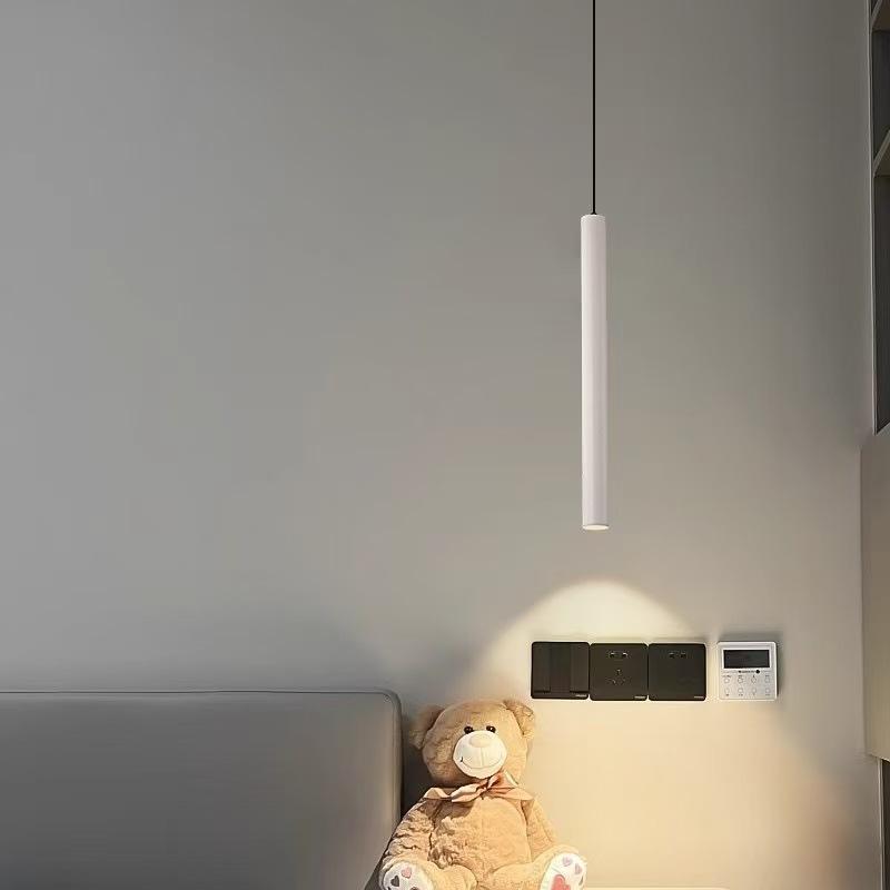 Lámpara de Araña Nórdica Minimalista para Dormitorio, de Noche, Moderna y Minimalista para Sala de Estar, Fondo de Pared, Colgante de Alambre, Foco Cilíndrico Largo Pequeño
