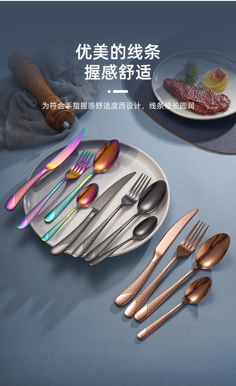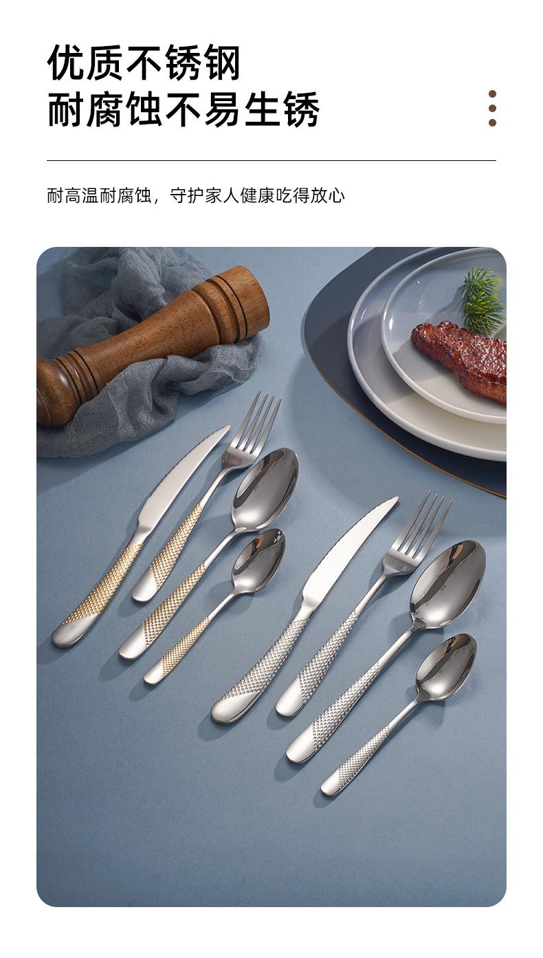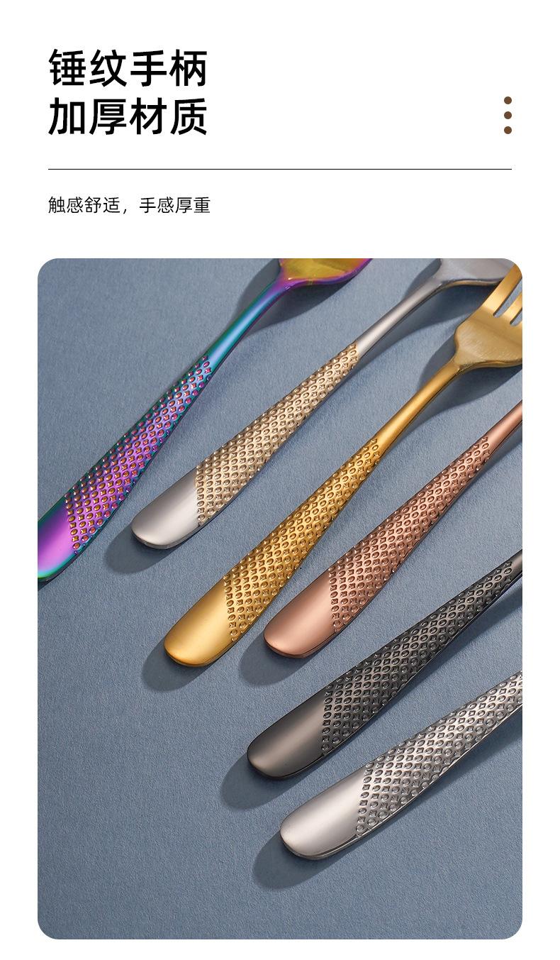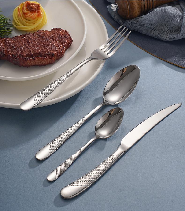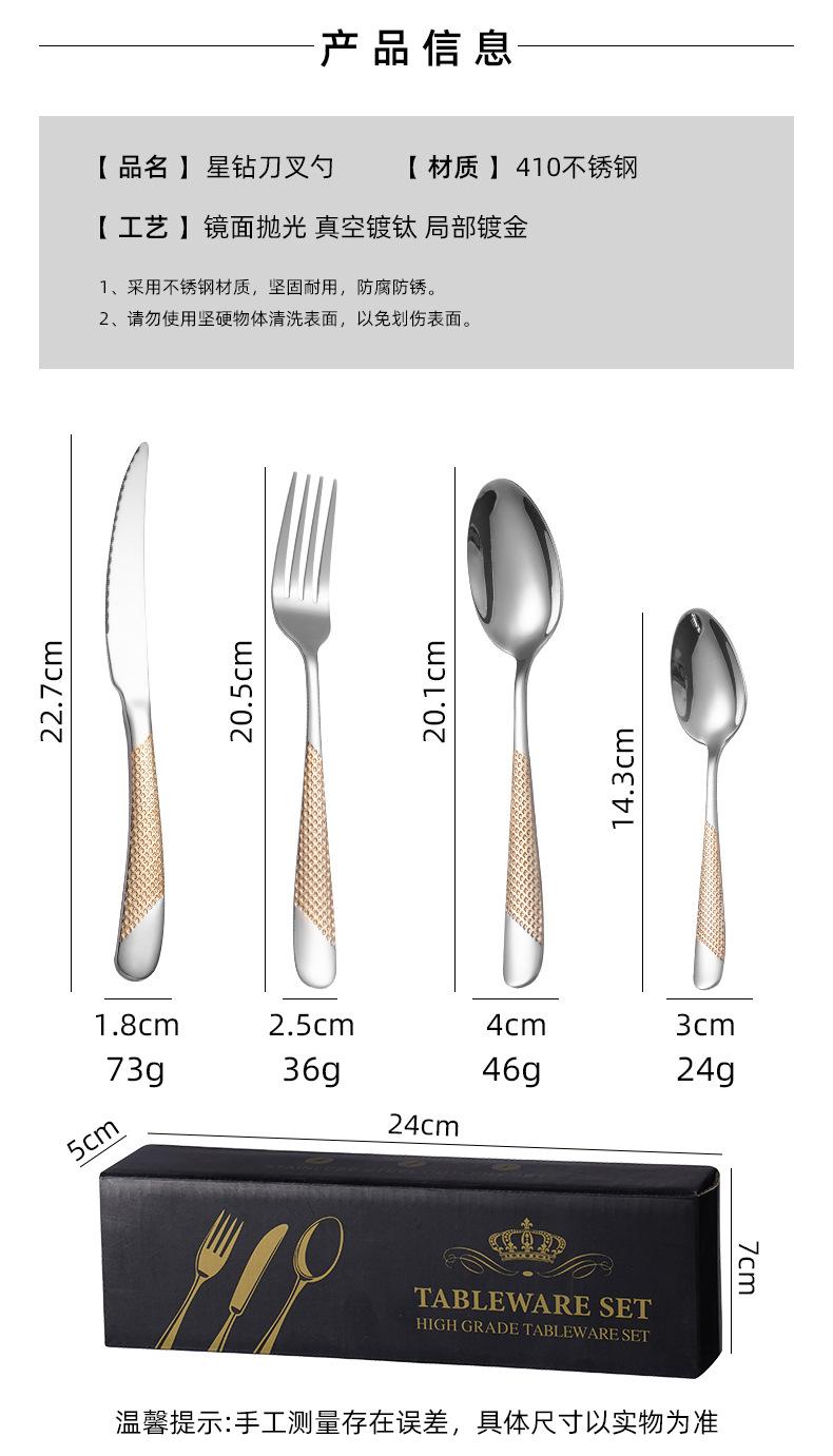 Vajilla de acero inoxidable transfronteriza, cuchillos, tenedores, cucharas, patrones martillados, diamantes estrella, postres de alto valor estético, bistec, juego de cucharas para comida occidental,Cubiertos de acero inoxidable transfronterizos, cuchillo, tenedor, cuchara, estrella martillada diamante de alto valor postre bistec comida occidental juego de cucharas