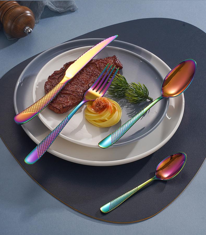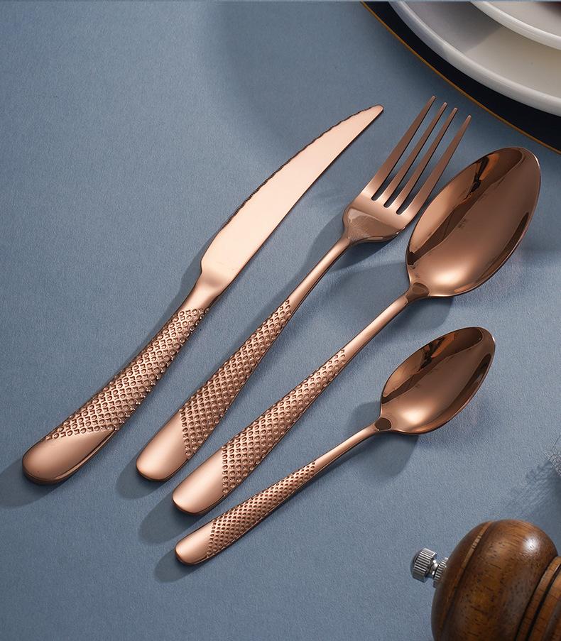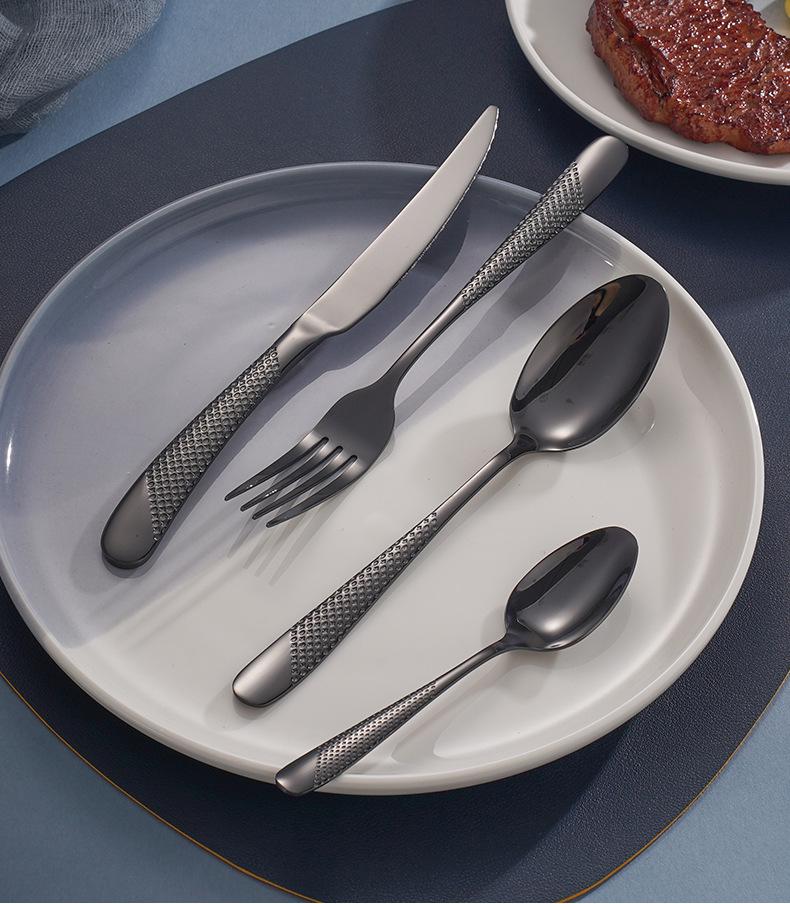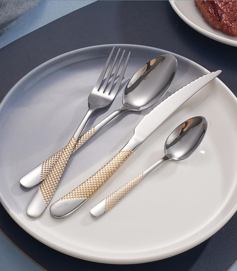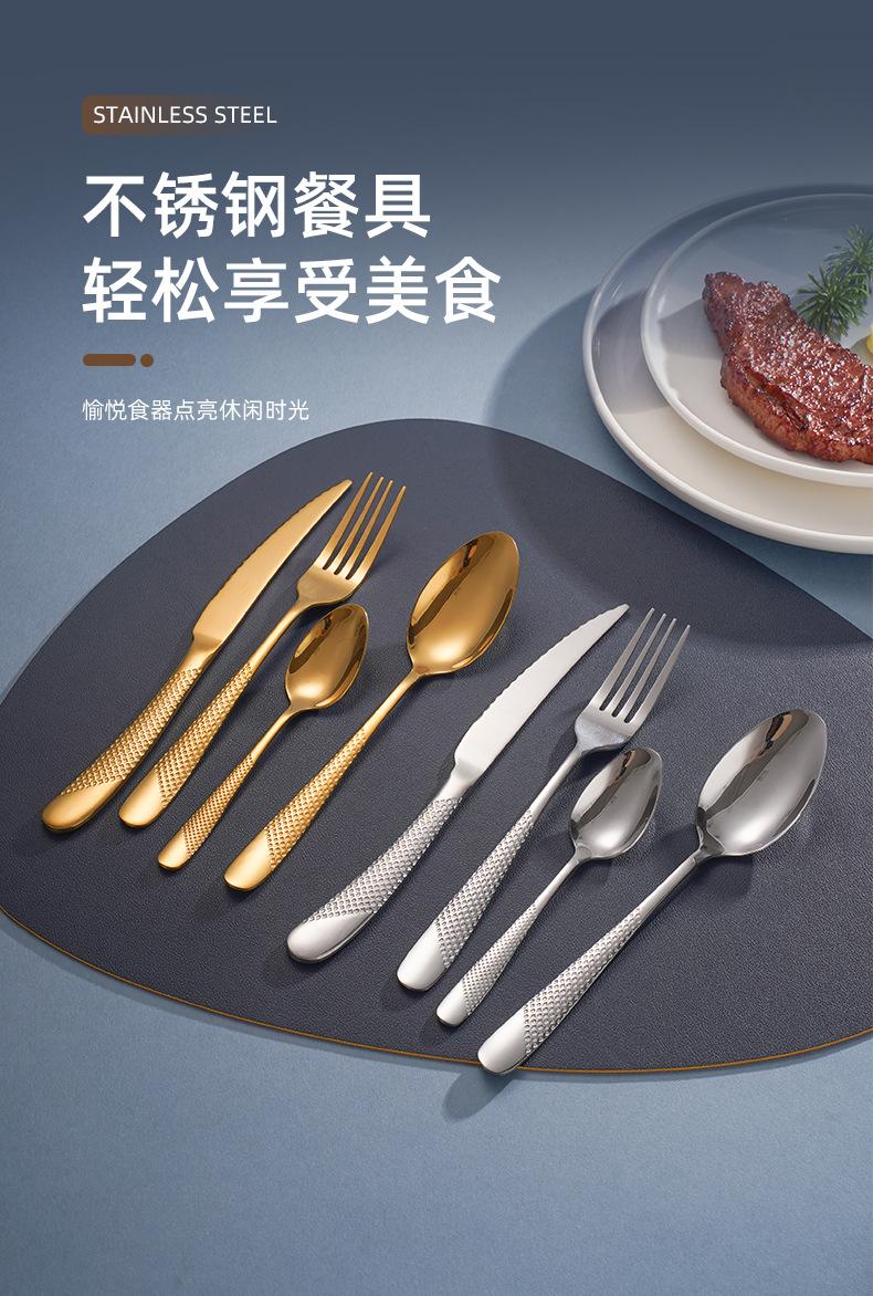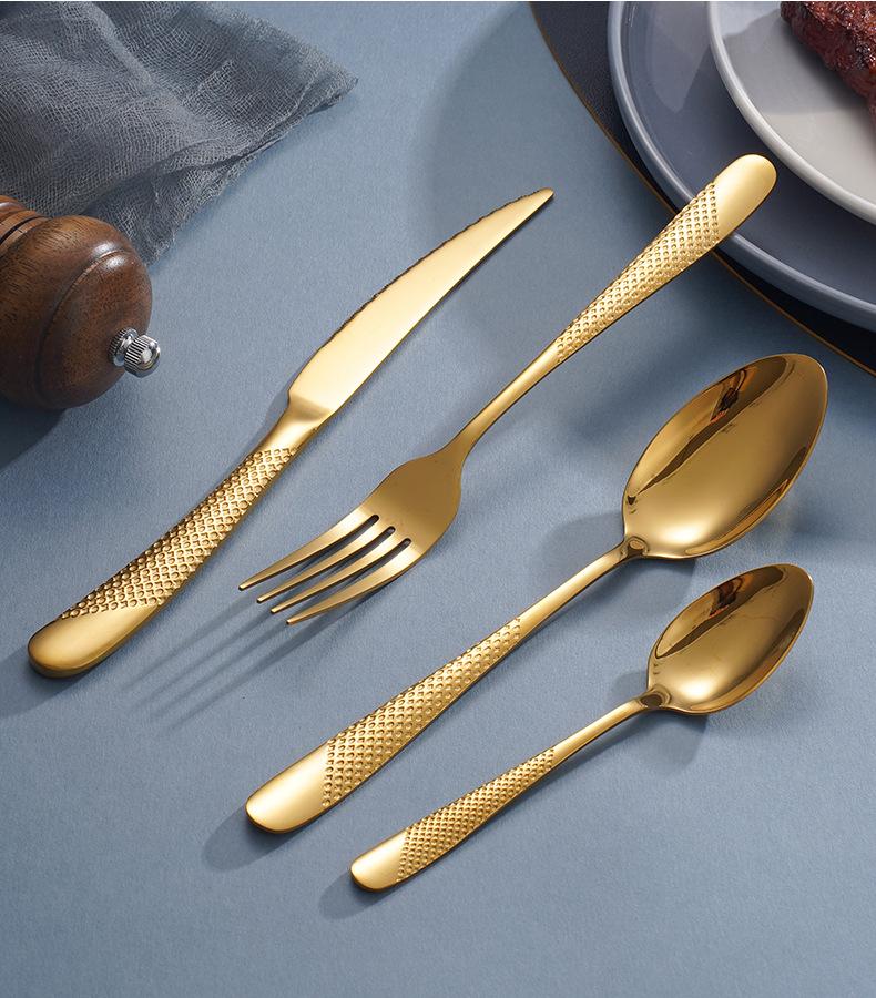 Vajilla de acero inoxidable transfronteriza, cuchillos, tenedores, cucharas, patrones martillados, diamantes estrella, postres de alto valor estético, bistec, juego de cucharas para comida occidental,Cubiertos de acero inoxidable transfronterizos, cuchillo, tenedor, cuchara, estrella martillada diamante de alto valor postre bistec comida occidental juego de cucharas