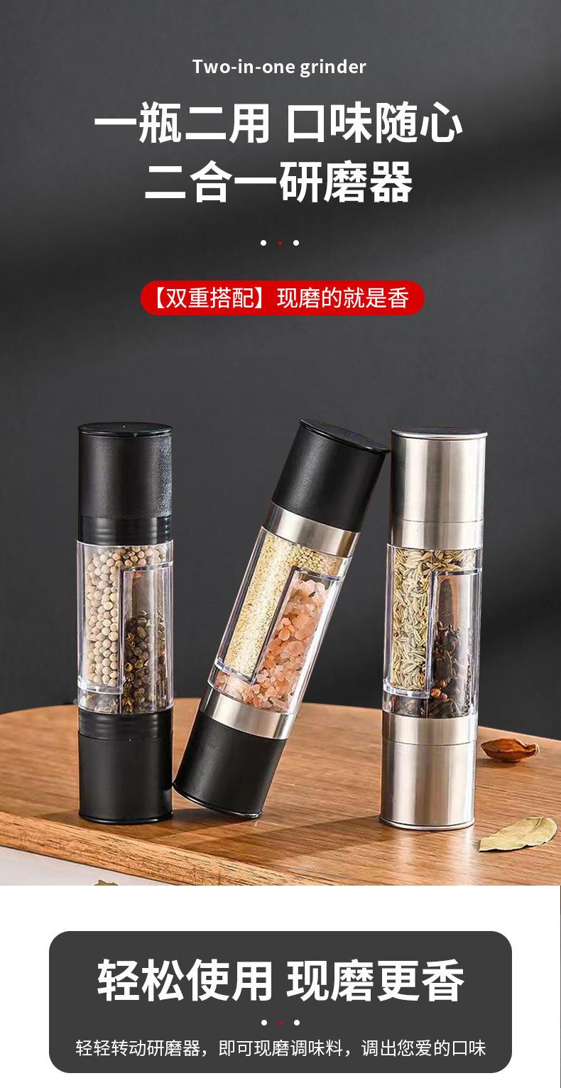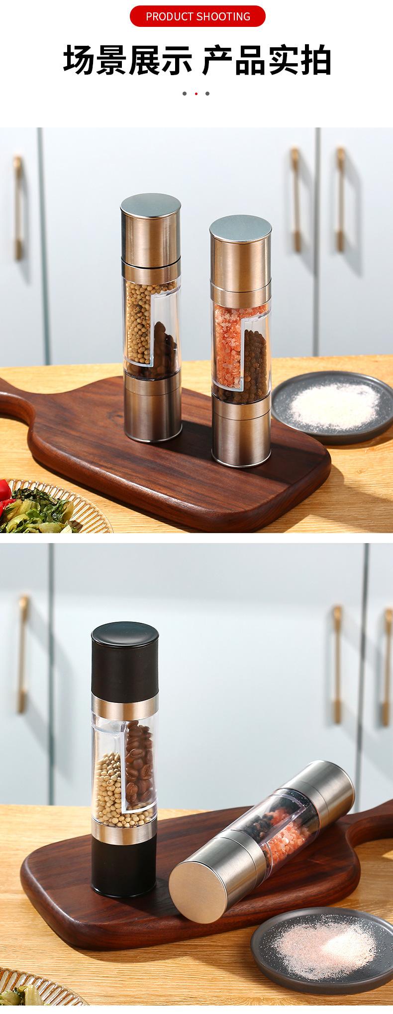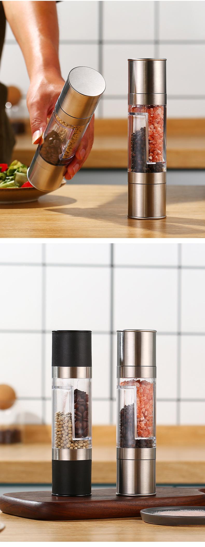 Molinillo manual de doble cabezal, sal marina, barbacoa, botella, cocina doméstica, pimienta, pimienta, acero inoxidable, moler condimentos, botella rociadora