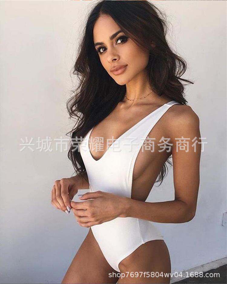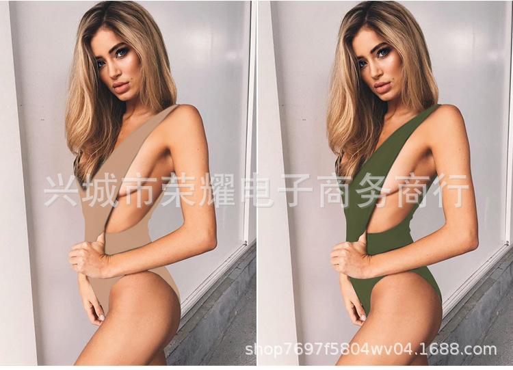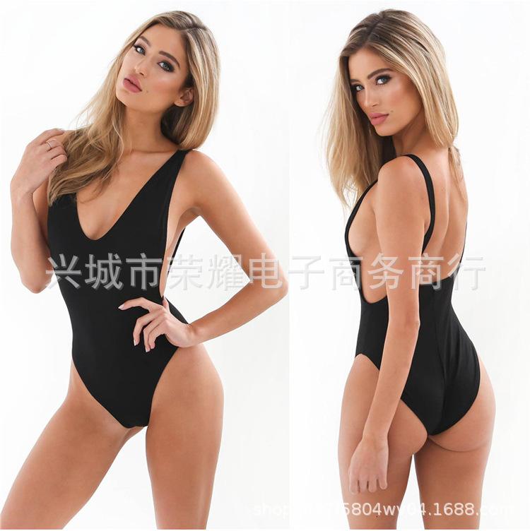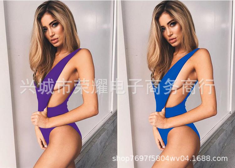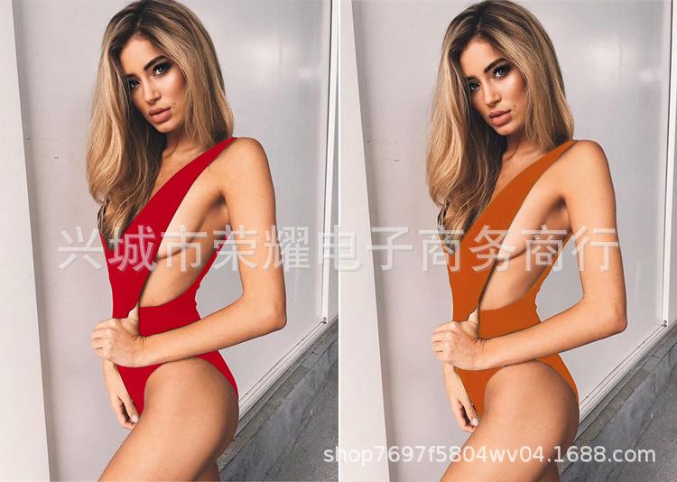 En stock Amazon Explosions Traje de baño triangular de una pieza de color sólido Transfronterizo 2024 Europa y América Traje de baño sexy sin espalda para mujer ins