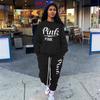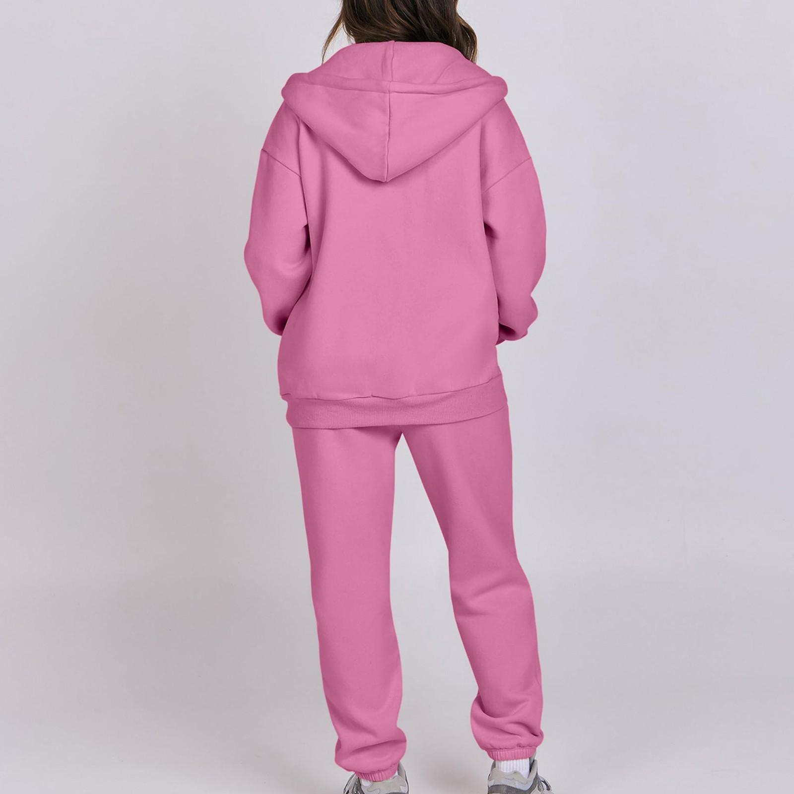 Pantalones de chándal de cuello redondo de color liso para mujer, moda informal de manga larga, estilo europeo y americano, para otoño e invierno