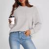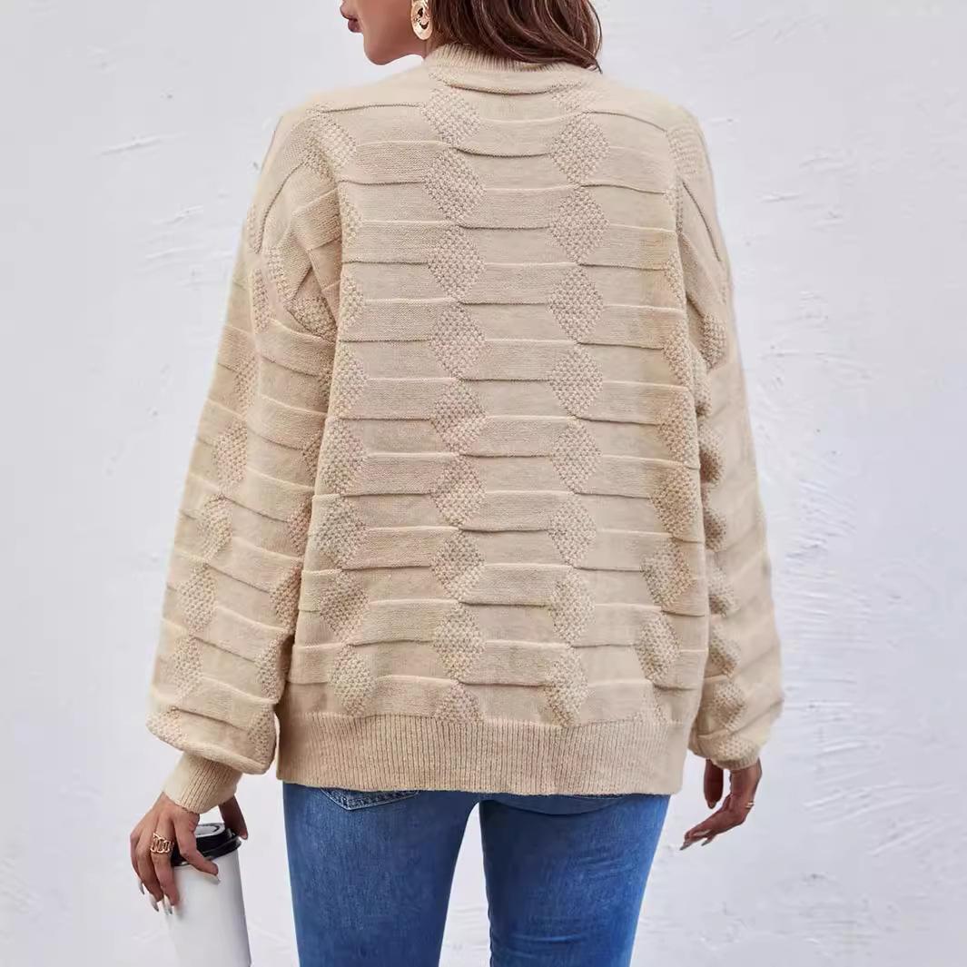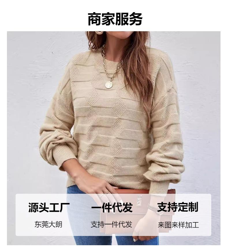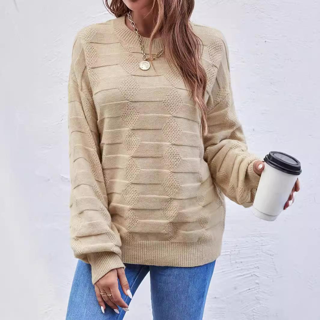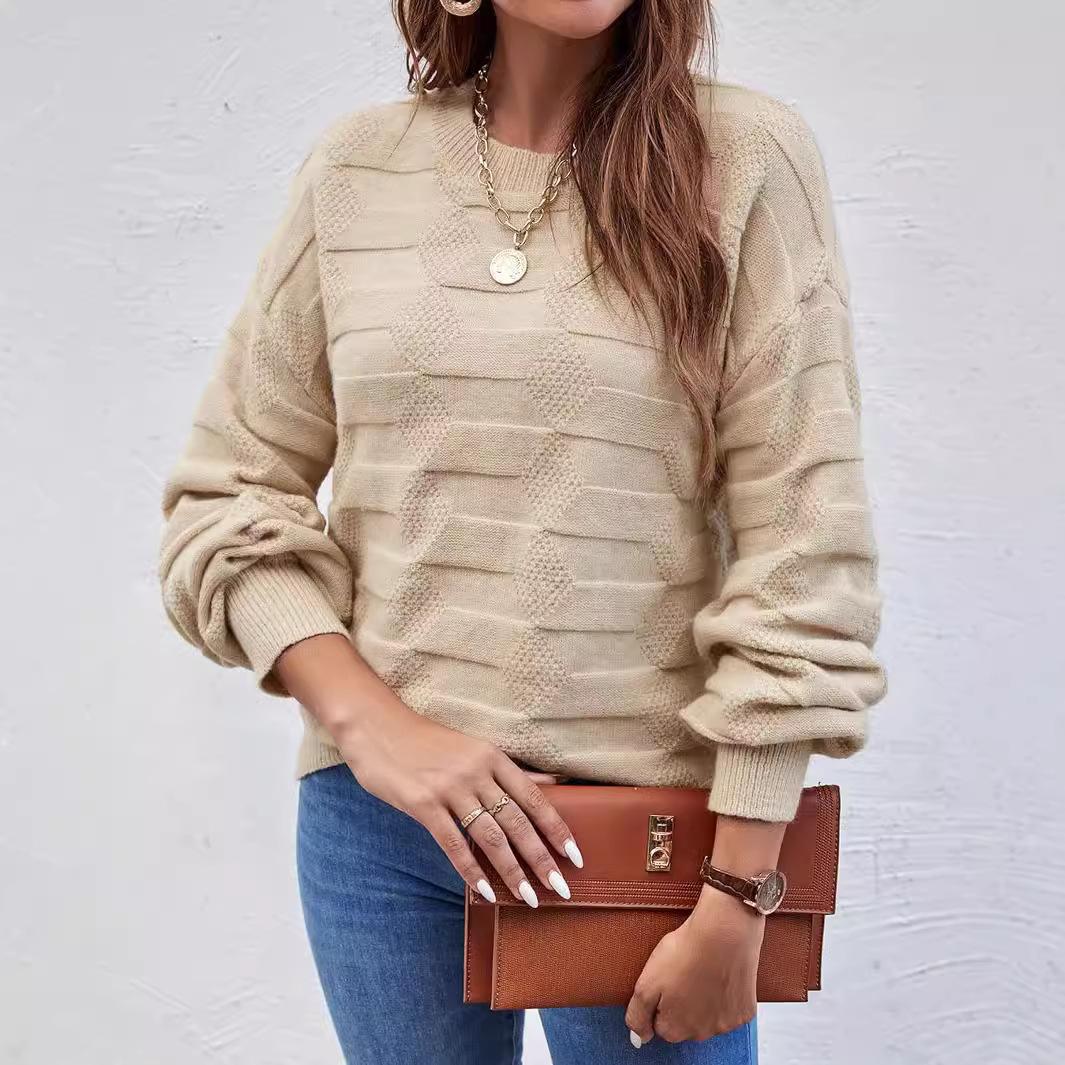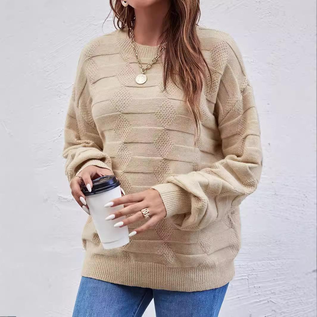 Otoño e Invierno Casual Manga Larga Cuello Redondo Jersey Color Puro Patrón Geométrico Punto Manga Corta Moda Versátil Ropa de Mujer