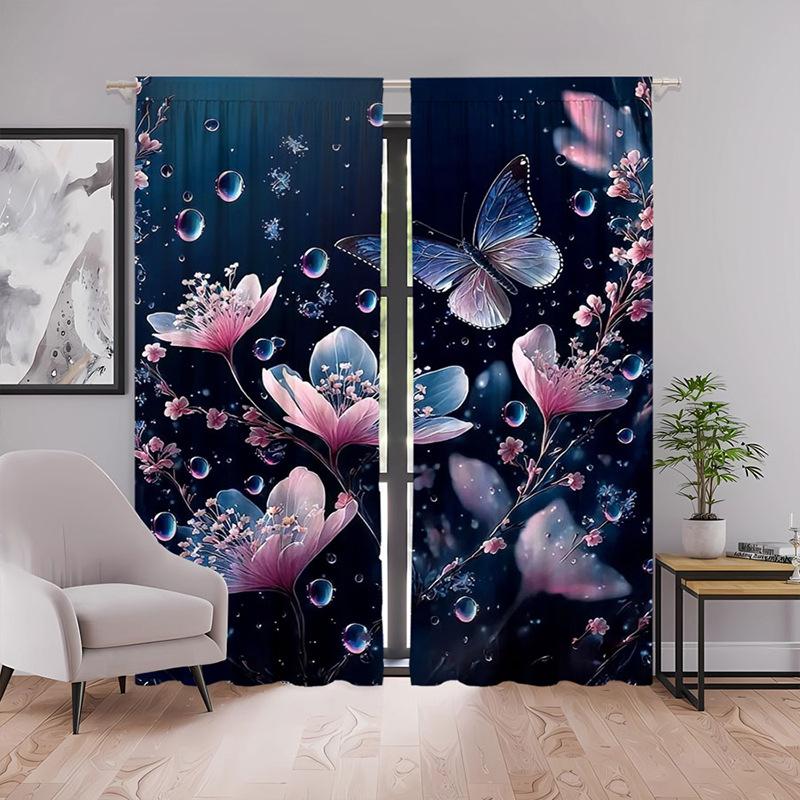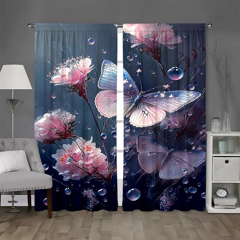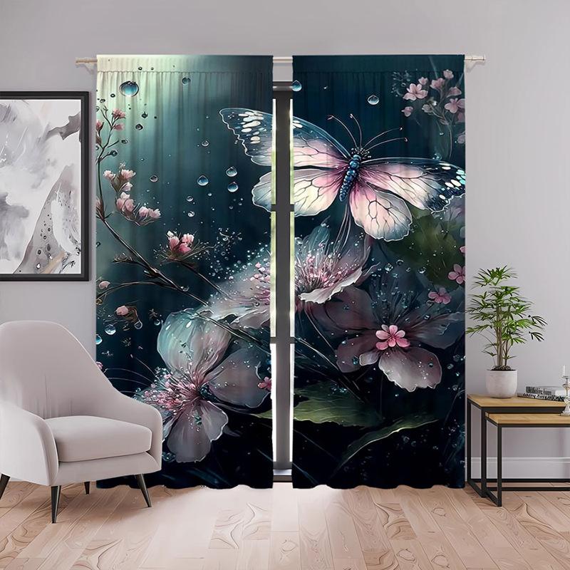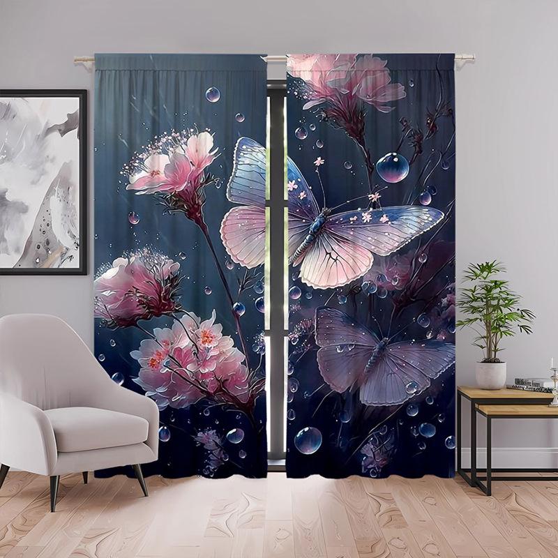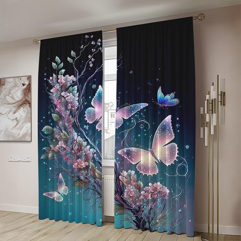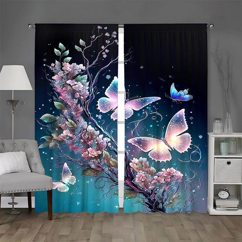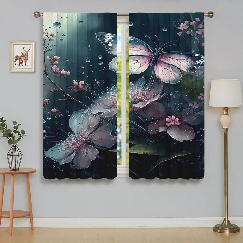 Compra Venta directa de fábrica, popular, 2 piezas, nueva cortina de mariposa de ensueño para decoración del hogar, impresión digital 3D, cortina con varilla dividida al por mayor en Joom.pro