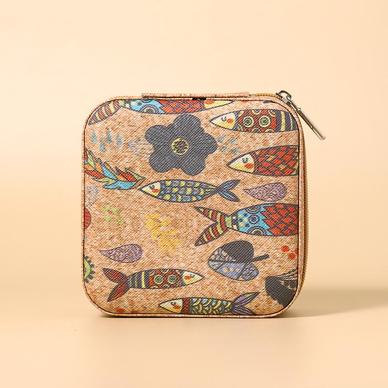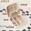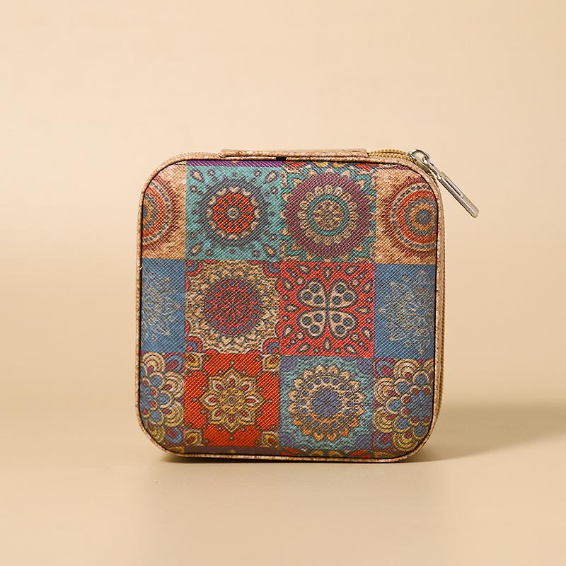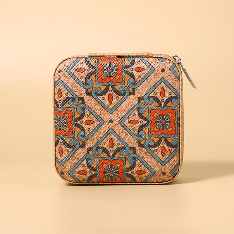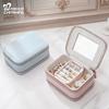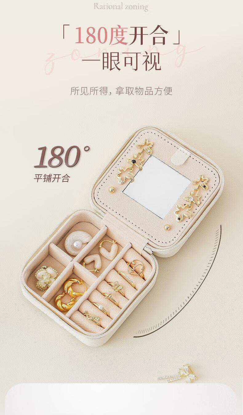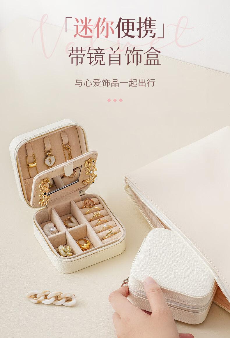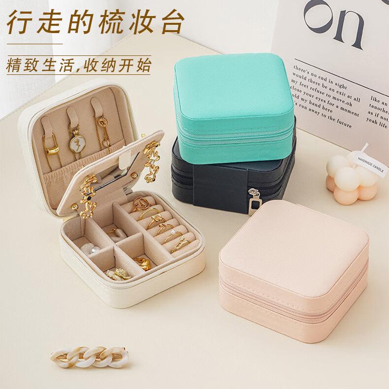 Joyero portátil con cremallera, espejo compacto, de viaje, exquisito y sencillo, para mujer, a la moda, para guardar anillos, pendientes y joyas.