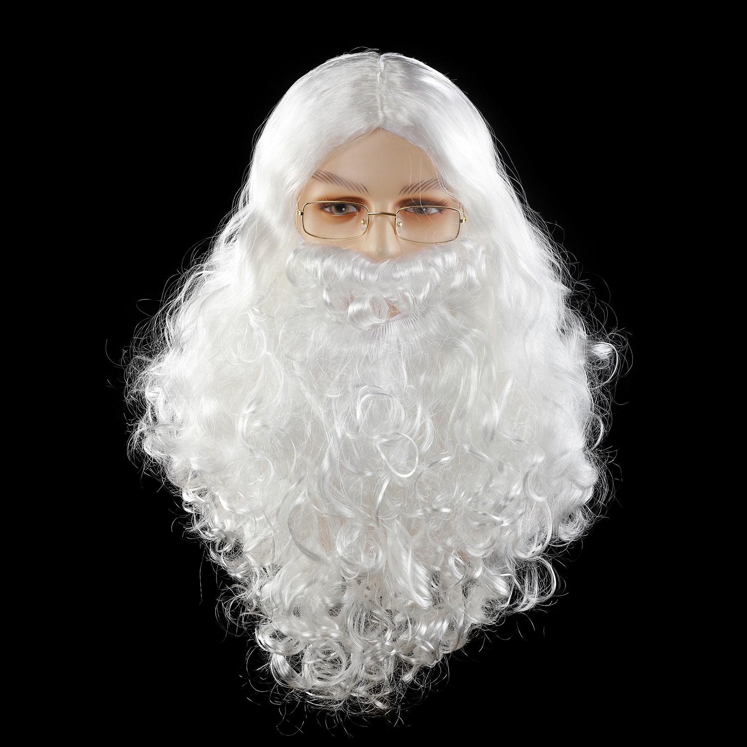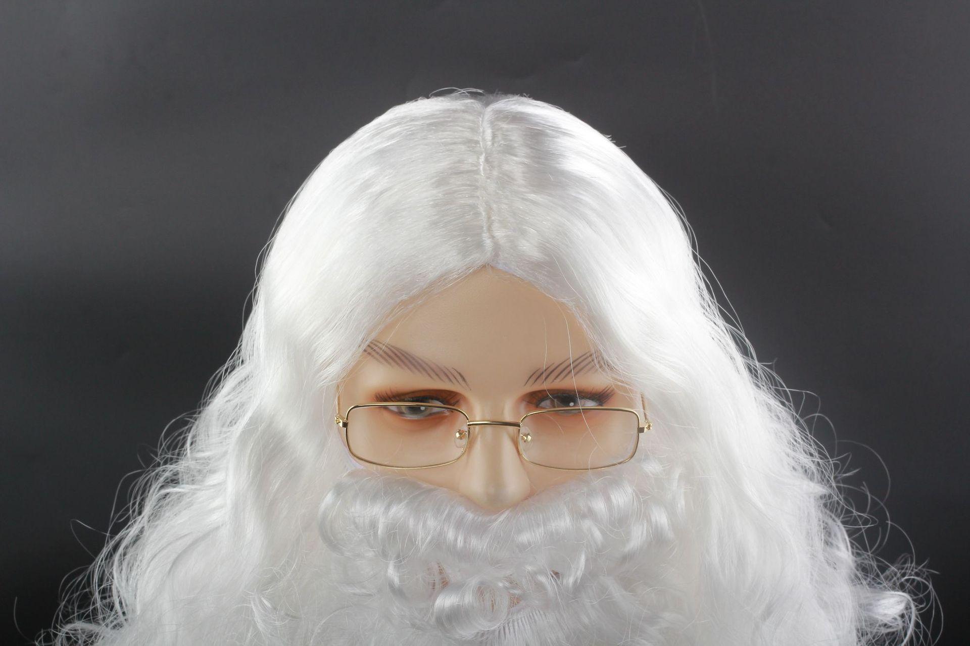 Christmas hat + christmas wig (regular style) + white beard + round frame mirror, Christmas hat + santa wig (r...