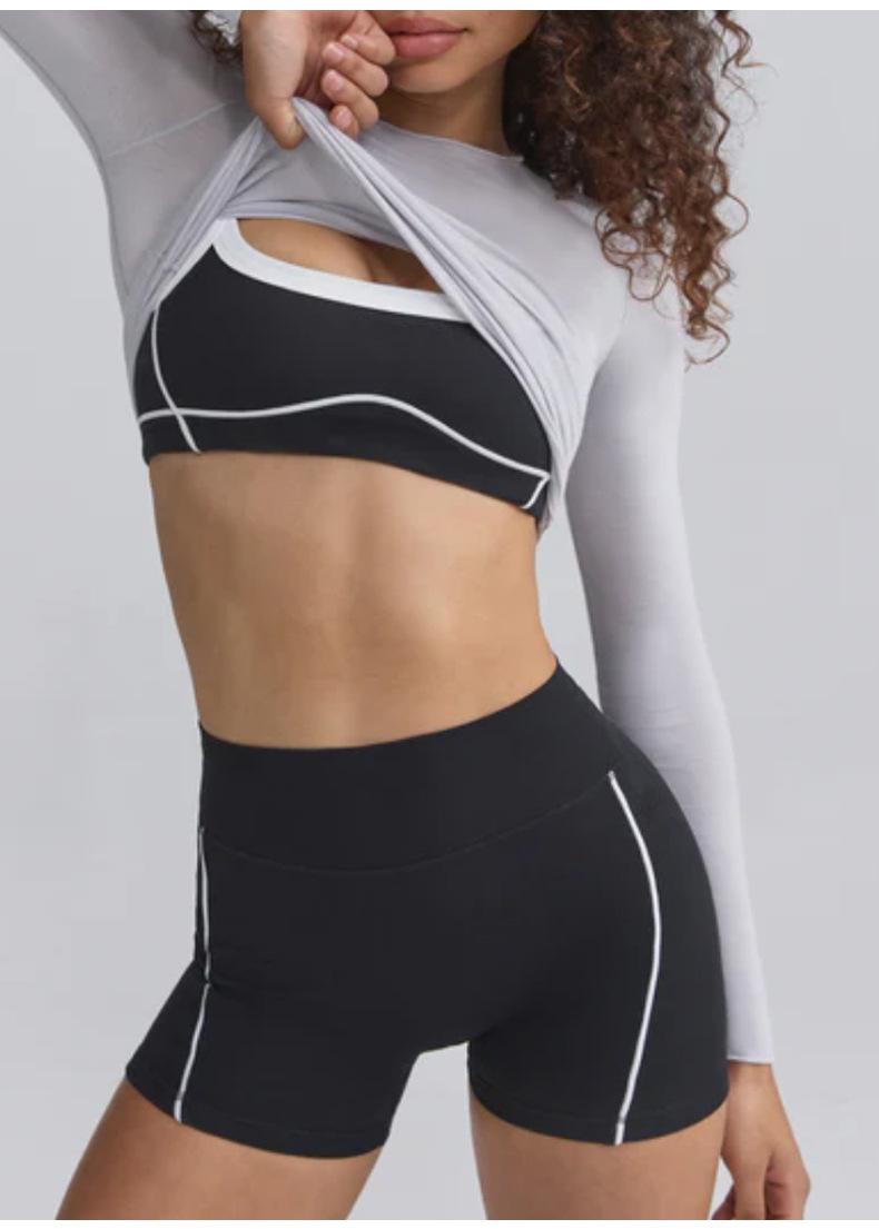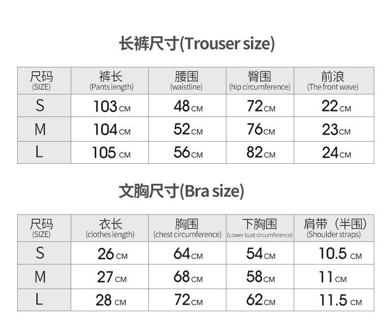 Pink Shorts, Black Shorts, Pink bra (removable chest pad), Black bra (removable chest pad), Pink Trousers, Black Trousers