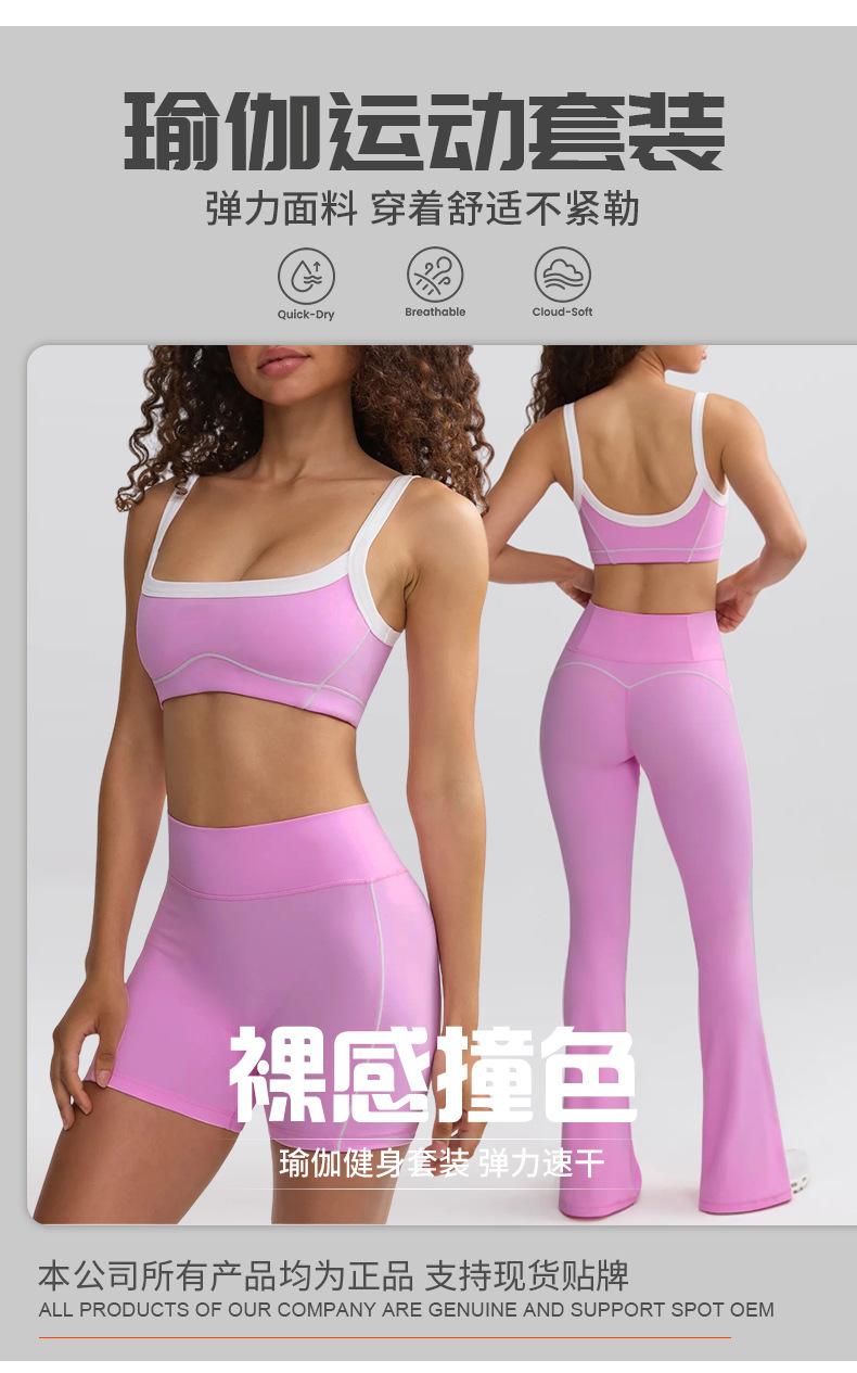Traje de yoga desnudo transfronterizo europeo y americano, ropa interior con sujetador para mujer, traje deportivo, pantalones cortos ajustados para fitness al aire libre, primavera y verano