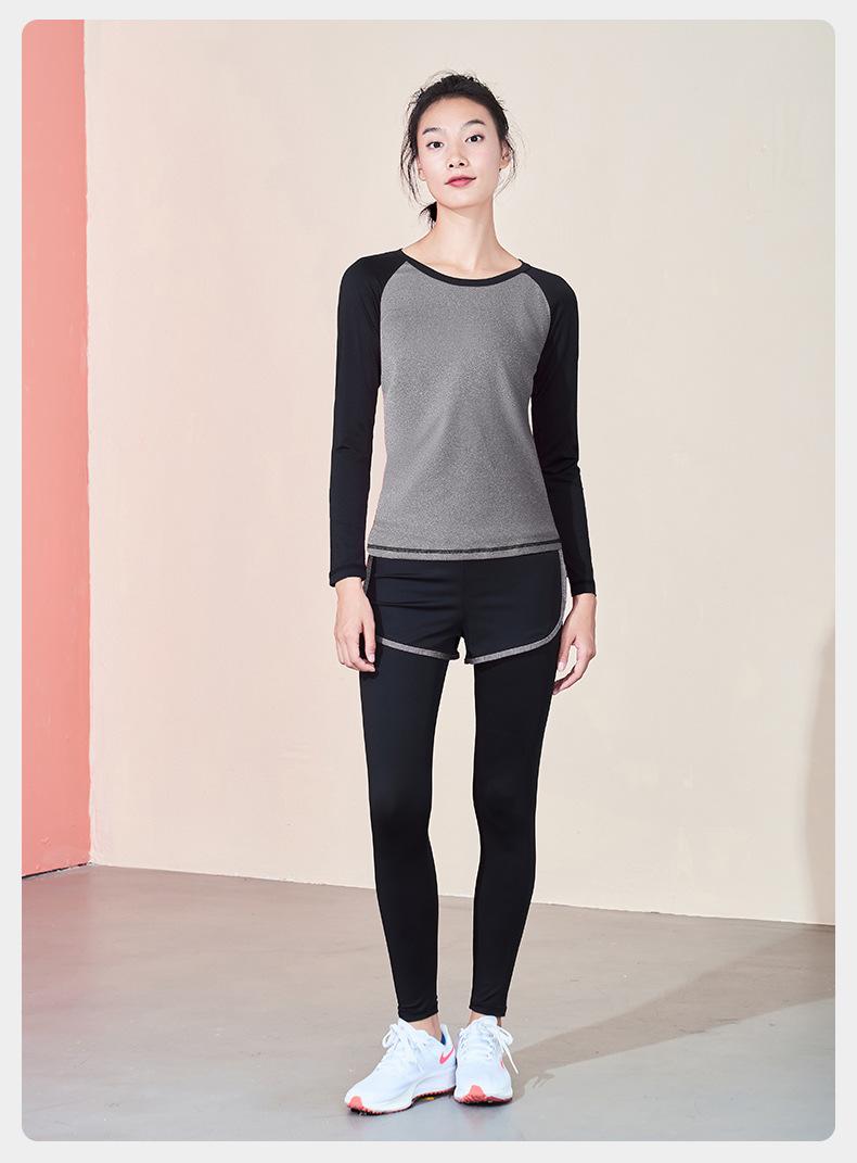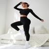 Conjunto deportivo de dos piezas para mujer, de manga larga, para yoga, running, entrenamiento, fitness, transpirable, de secado rápido, elástico y ajustado.