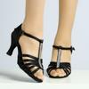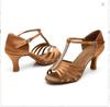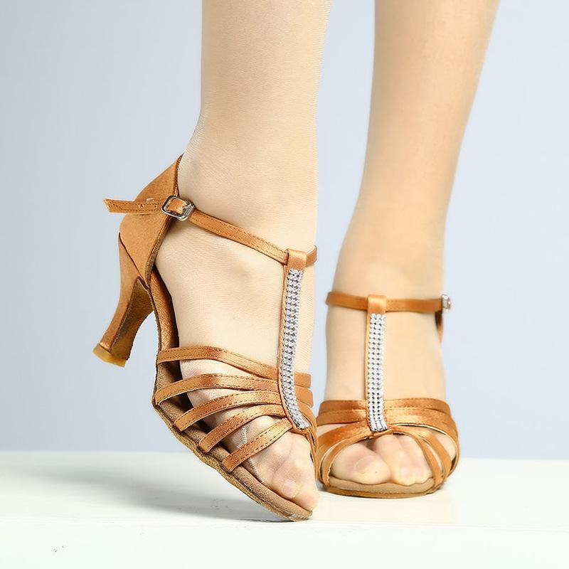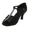Venta al por mayor transfronteriza de zapatos de baile latino de satén con diamantes para mujer, zapatos de baile moderno, zapatos de baile cuadrado, zapatos de baile de salón, zapatos de baile de suela blanda.
