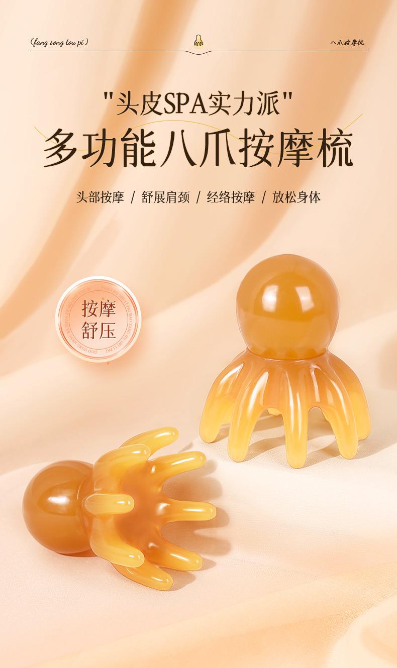 Large octopus massage comb (abs resin), Large pink octopus octopus and octopus massage comb (resin beeswax), [...