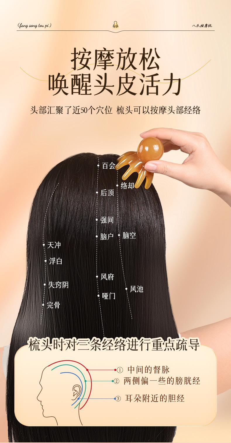 Pulpo Pulpo Cabeza Terapia Peinar Cabello Masajeador de Meridianos Peine Acupuntura Cuero Cabelludo Dientes Grandes Anchos Peine de Masaje Pulpo