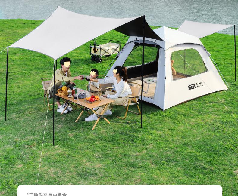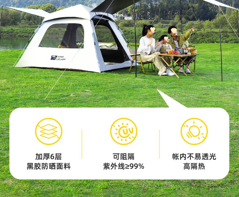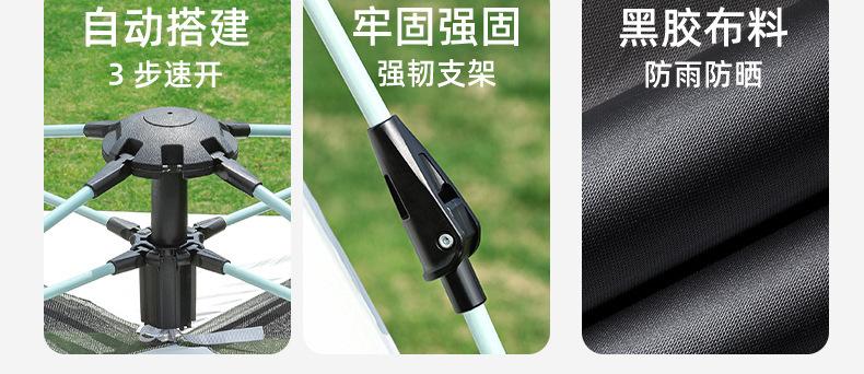 Tienda de campaña portátil plegable para exteriores con toldo de goma negra, apertura rápida automática integrada, toldo grueso resistente a la lluvia, equipo de acampada