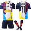 Uniforme de fútbol clásico conmemorativo de cuello redondo con bordado de camiseta retro azul