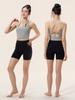 Shuangshi - Ropa de yoga sin costuras para primavera y verano, para mujer, color piel, corte ajustado, para correr, fitness, cuello redondo, alta elasticidad, mangas cortas