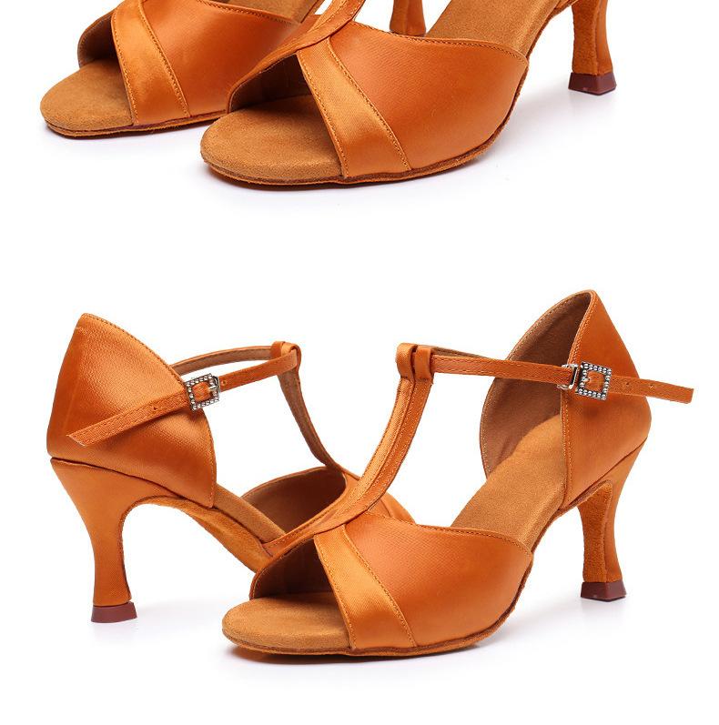Zapatos de baile latino de suela blanda, sandalias de verano 2025 para mujer con hebilla, zapatos de baile de tacón medio, zapatos de baile modernos al por mayor.