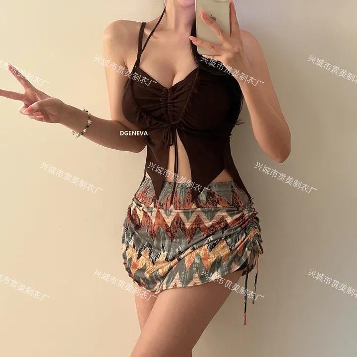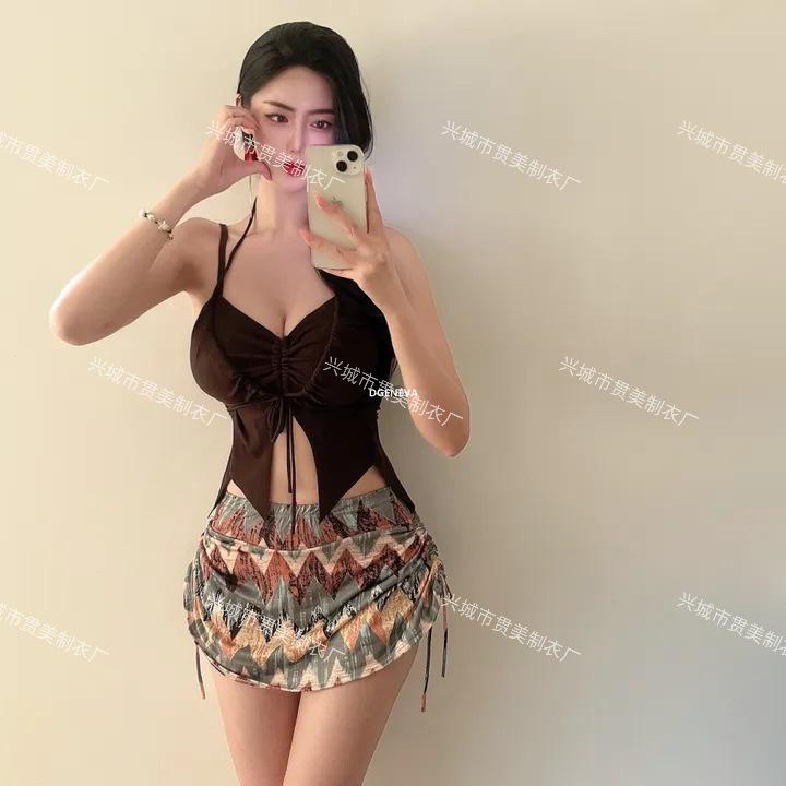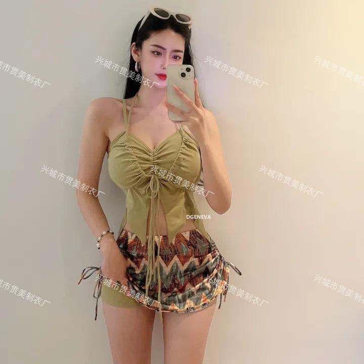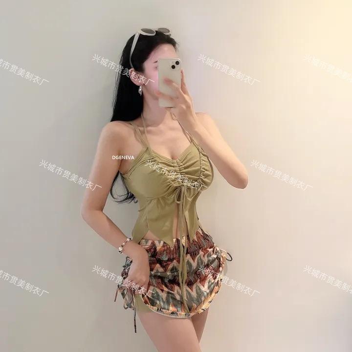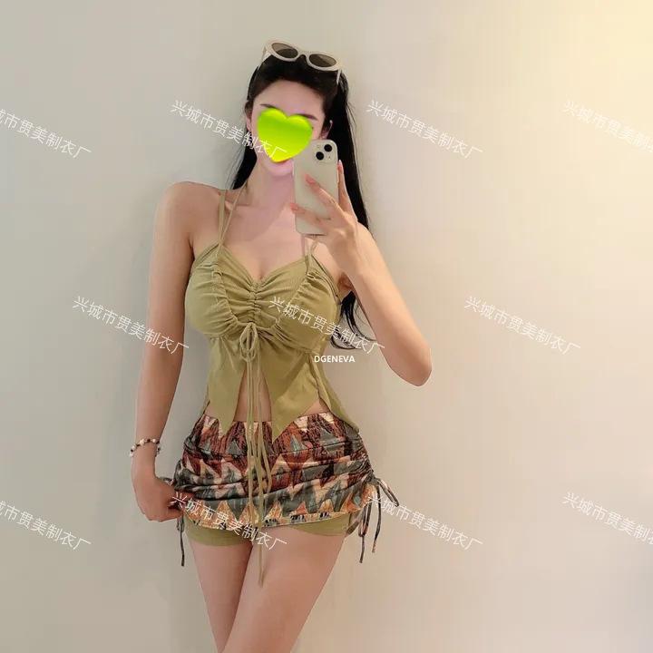 2 Colores] Nuevo Traje de Baño para Mujer Conjunto de Dos Piezas Dividido Conservador Adelgazante de Alta Gama Estilo Hada Sexy Traje de Baño para Aguas Termales para Mujer
