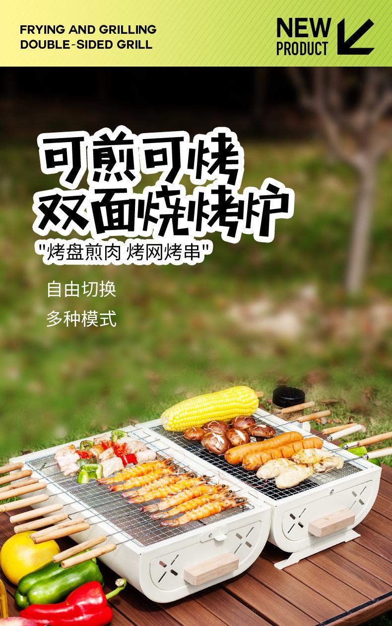 Parrilla para Barbacoa Exterior Hogar Camping Picnic Portátil Doble Uso Plegable Horno para Barbacoa Horno para Barbacoa Sin Humo Espesor Doble Cara