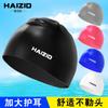 Gorro de natación de silicona, muy elástico, unisex, impermeable, con protección auditiva, logotipo imprimible sencillo y moderno.