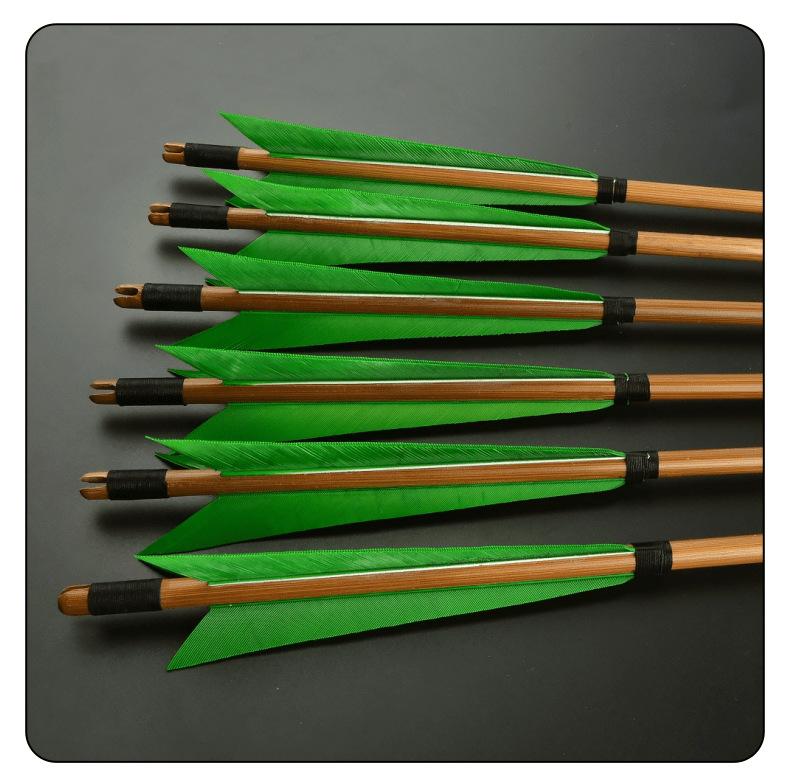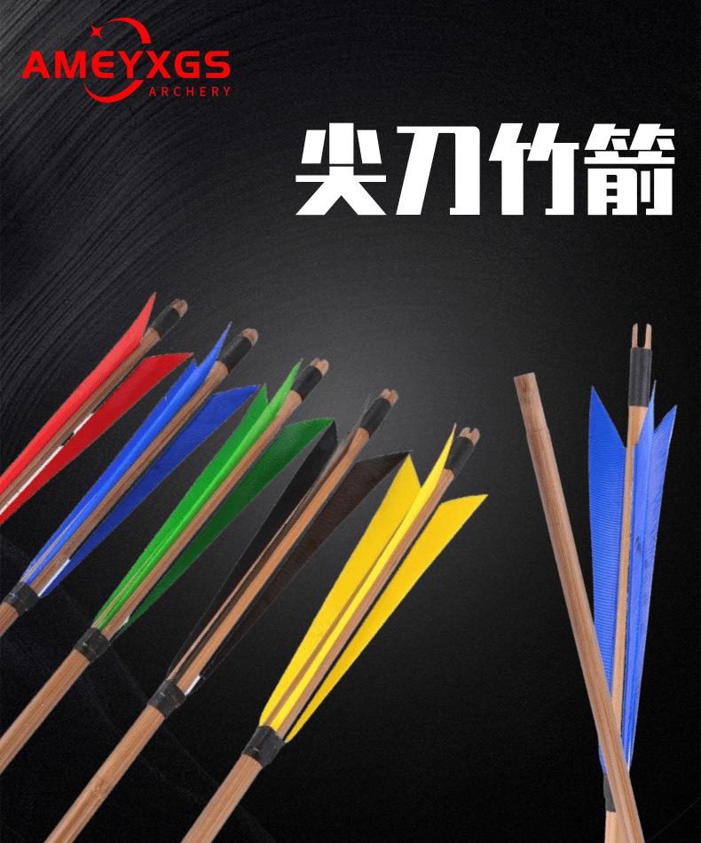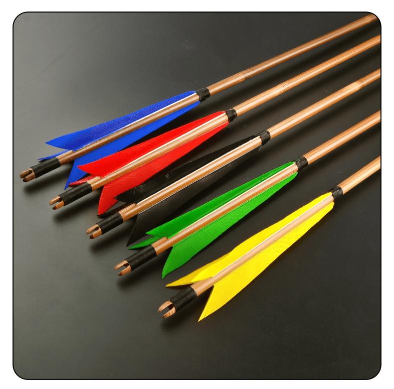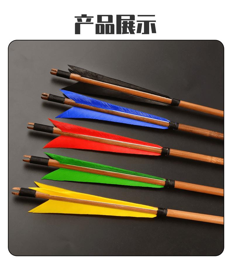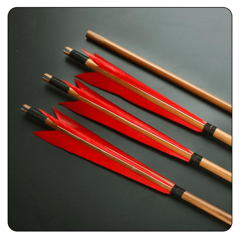 Flecha de Bambú AMEYXGS Pluma Verdadera 8mm Flecha de Bambú Sólido Vara de Flecha de Bambú Tradicional Caza Anti-Corte Arco de Tiro Recto Deporte al Aire Libre Competición
