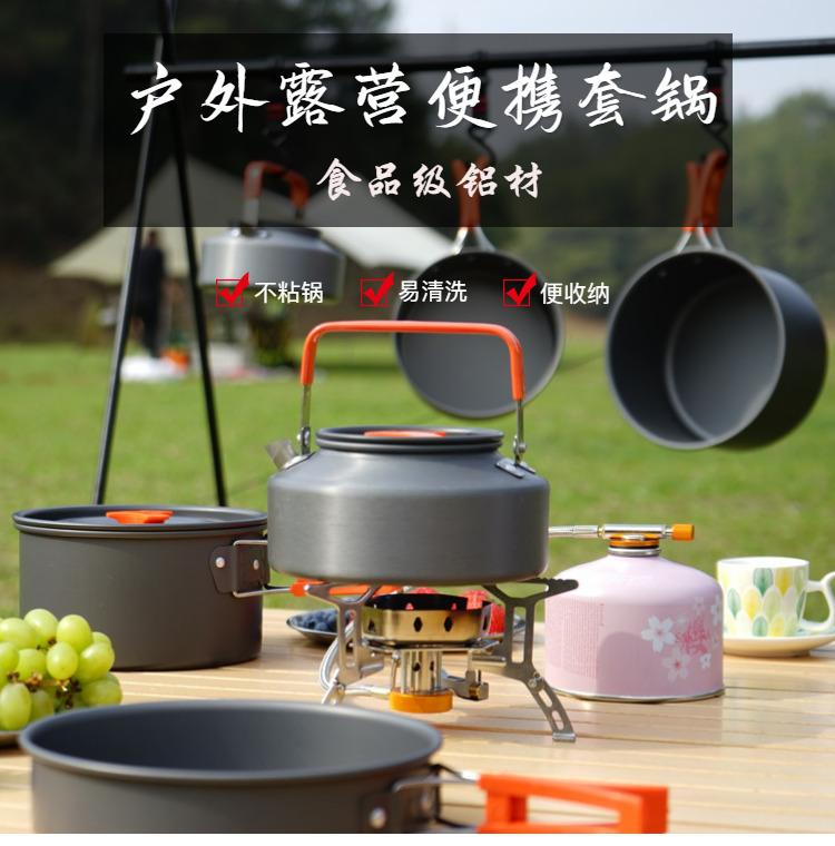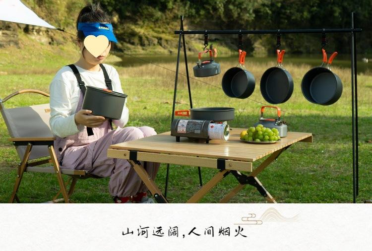 Juego de ollas para acampar al aire libre, olla para picnic, utensilios de cocina para acampar, equipo de viaje portátil, hervidor plegable, olla para freír, estante para cocina