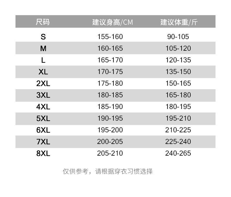 S, M, L, XL, XXL, XXXL, 4XL, 5XL, 6XL, 8XL