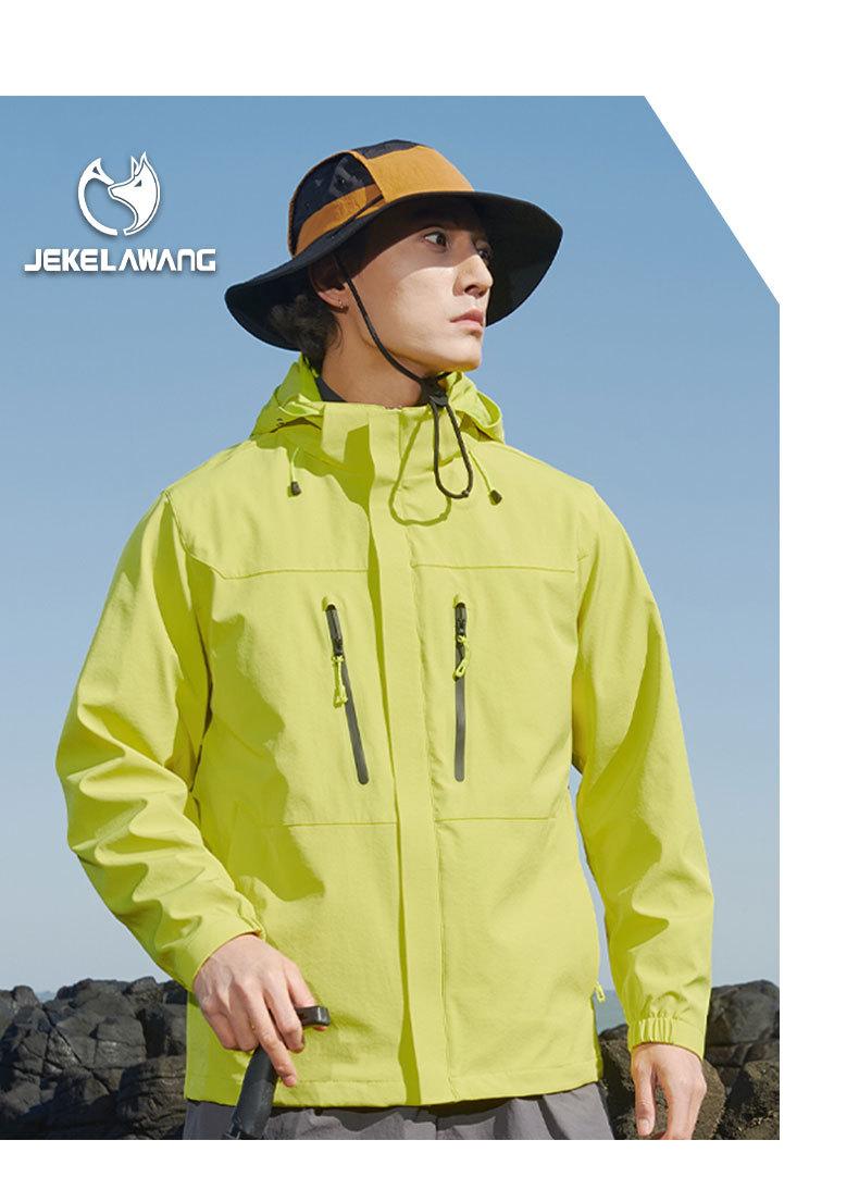 Chaqueta de caza de primavera para mujer, ropa de viaje de colores brillantes para hombre, chaqueta publicitaria de alta gama para exteriores con logotipo impreso.