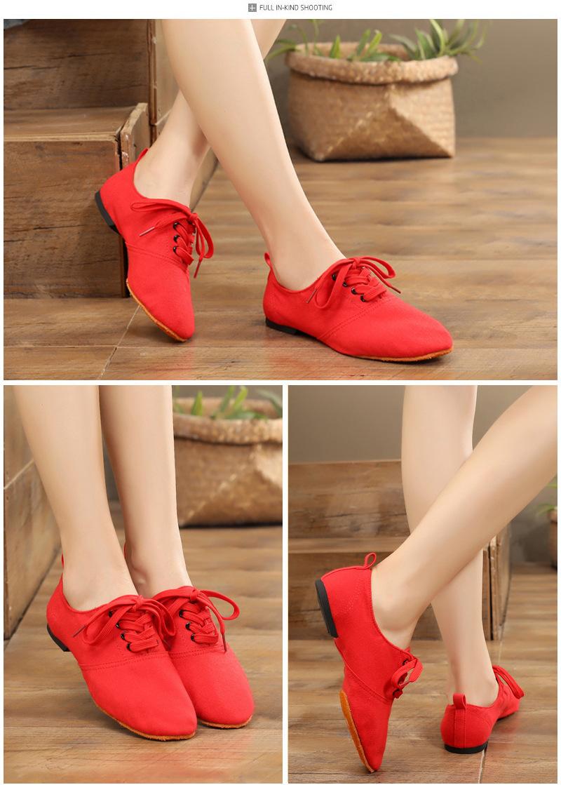 Zapatos de baile rojos para mujer, verano 2025, comercio exterior, venta al por mayor, zapatos de baile para adultos, zapatos de lona para baile latino, zapatos de práctica de baile de tacón bajo
