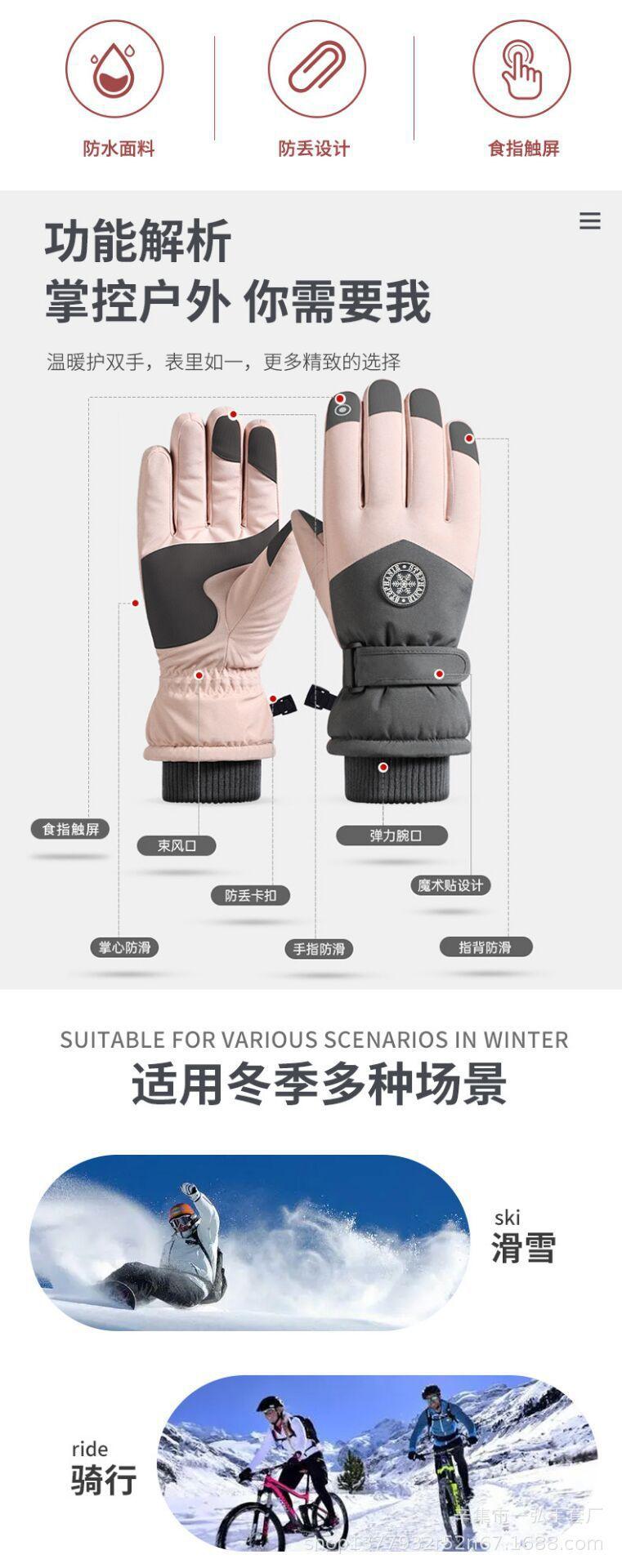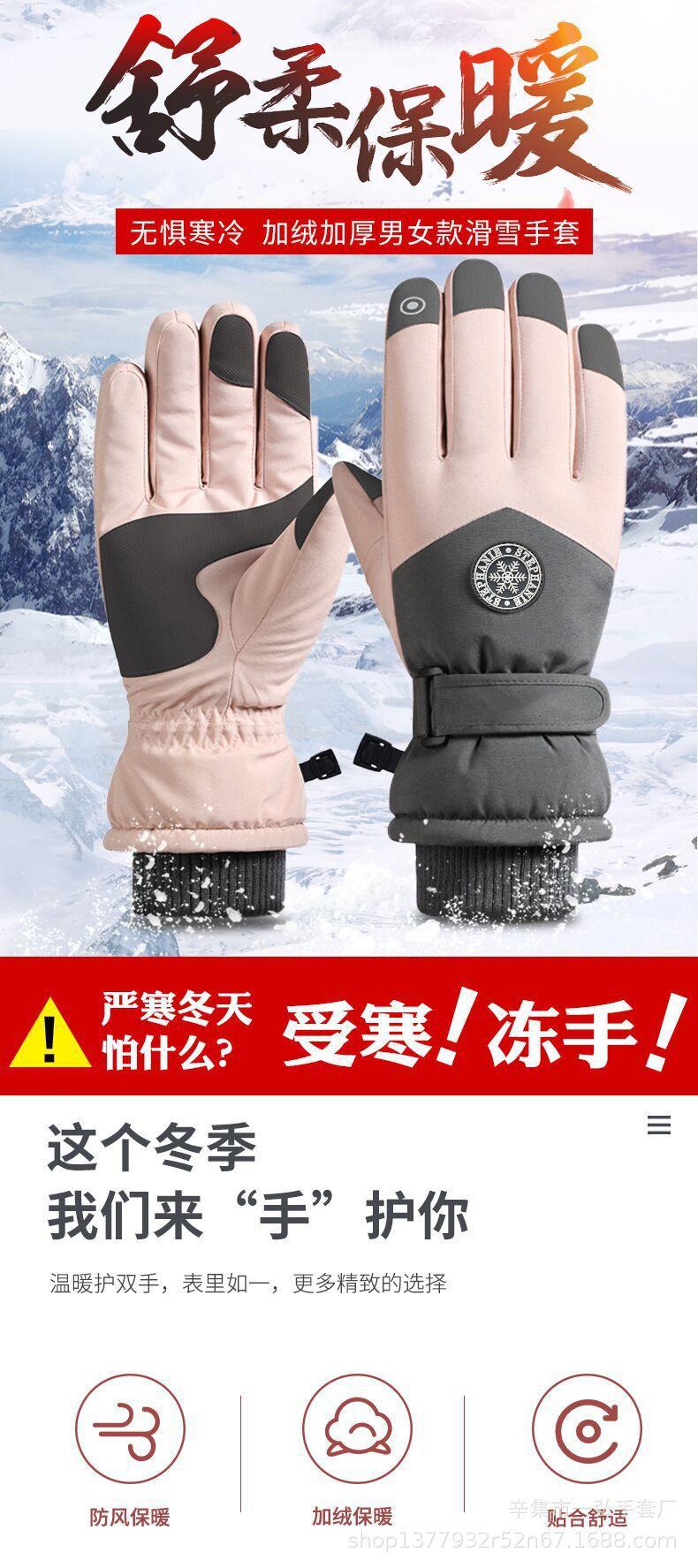 Guantes de esquí para hombre y mujer, para invierno, para exteriores, ciclismo, montañismo, antideslizantes, deportivos, de terciopelo grueso, con pantalla táctil, cálidos.