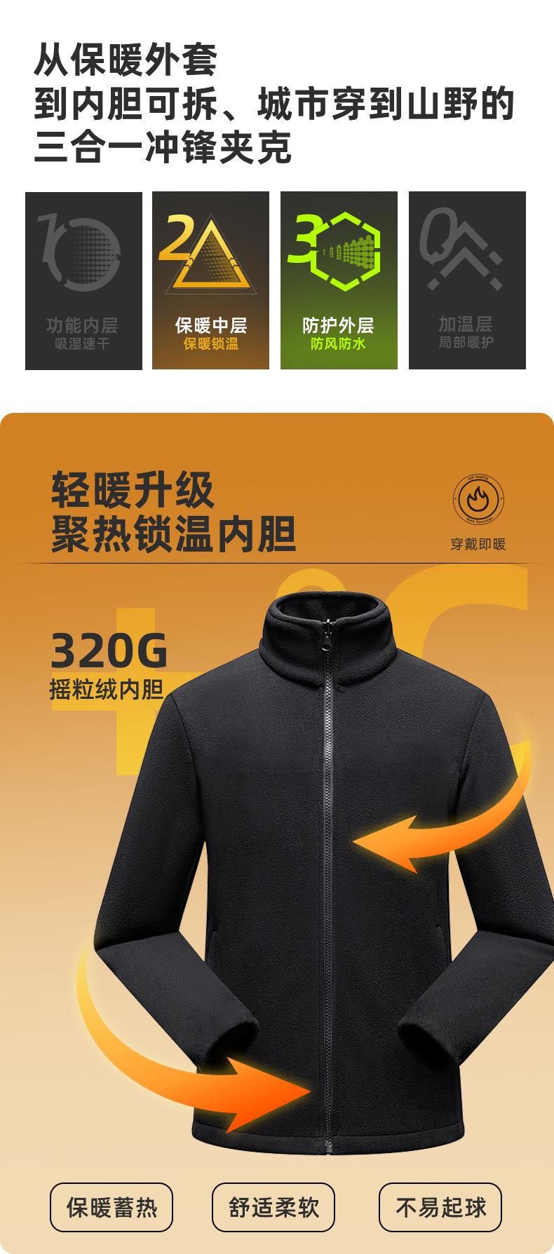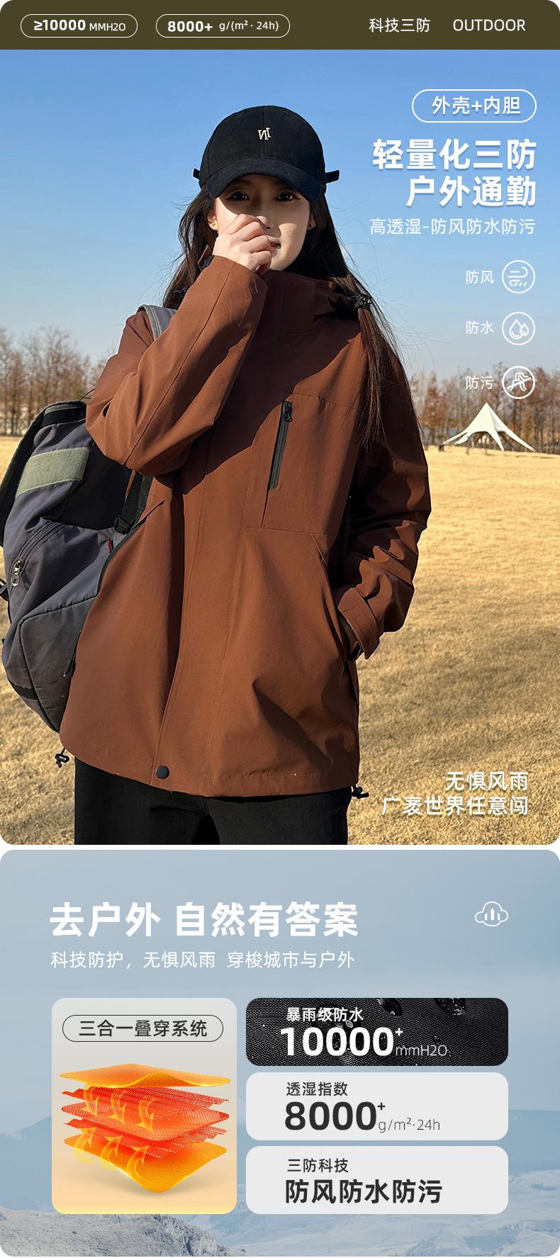 Chaqueta de montañismo impermeable, a prueba de viento, desmontable, tres en uno, para deportes al aire libre, para hombre y mujer.