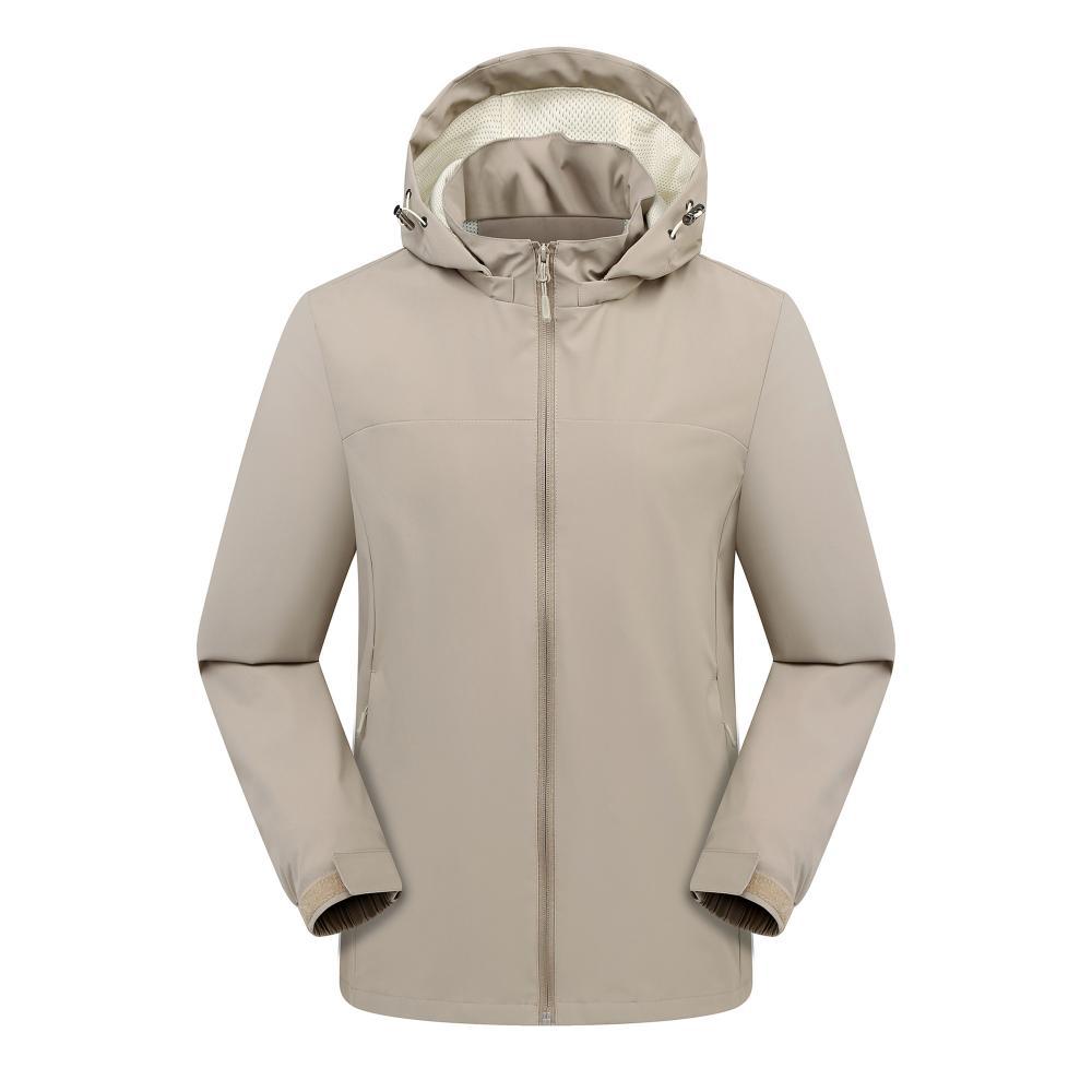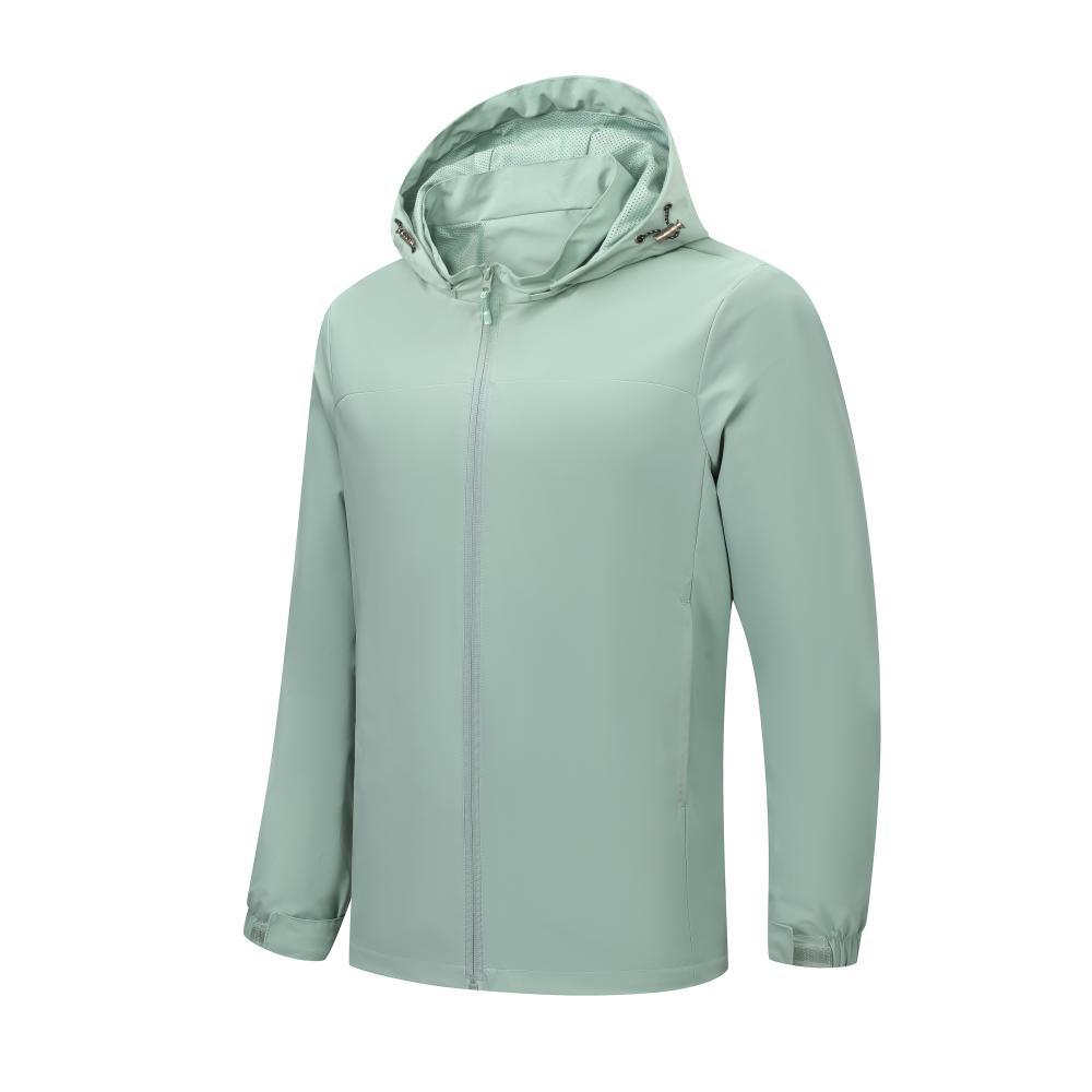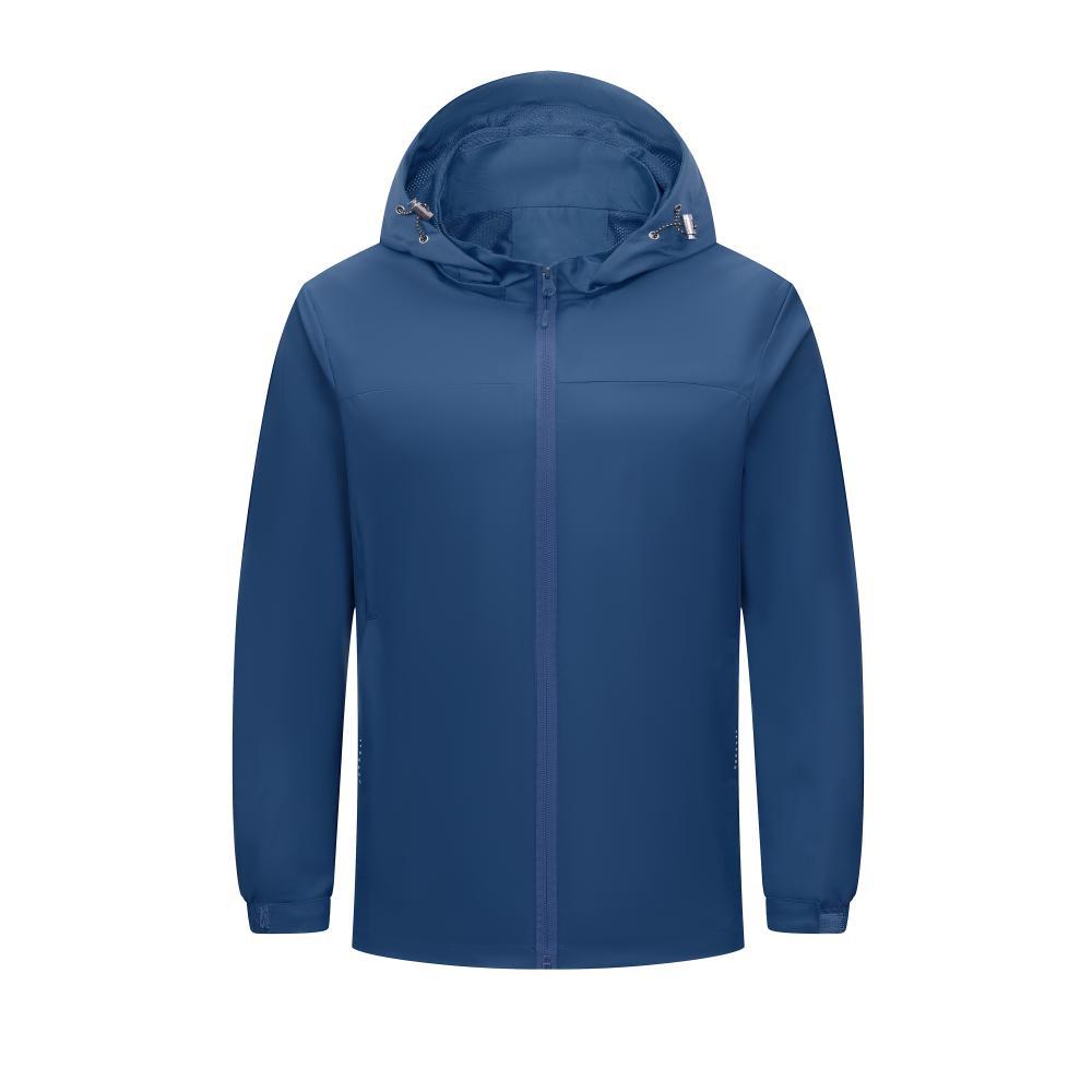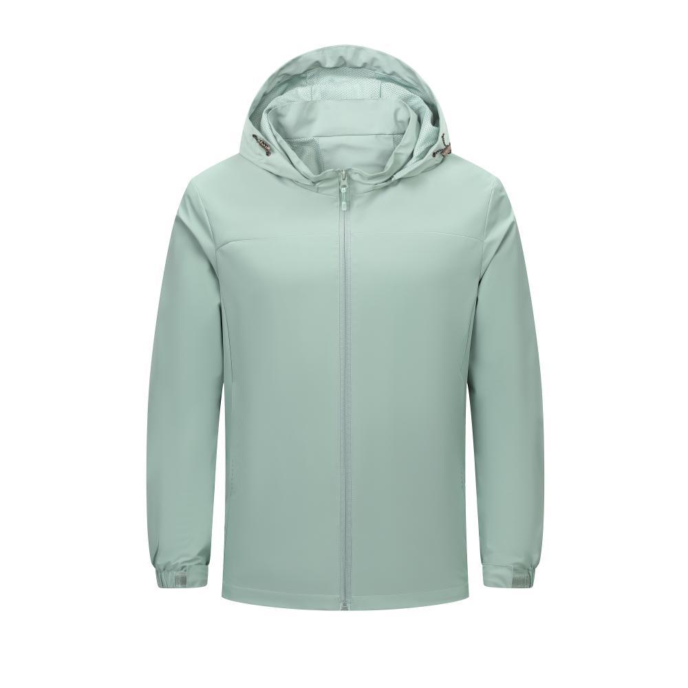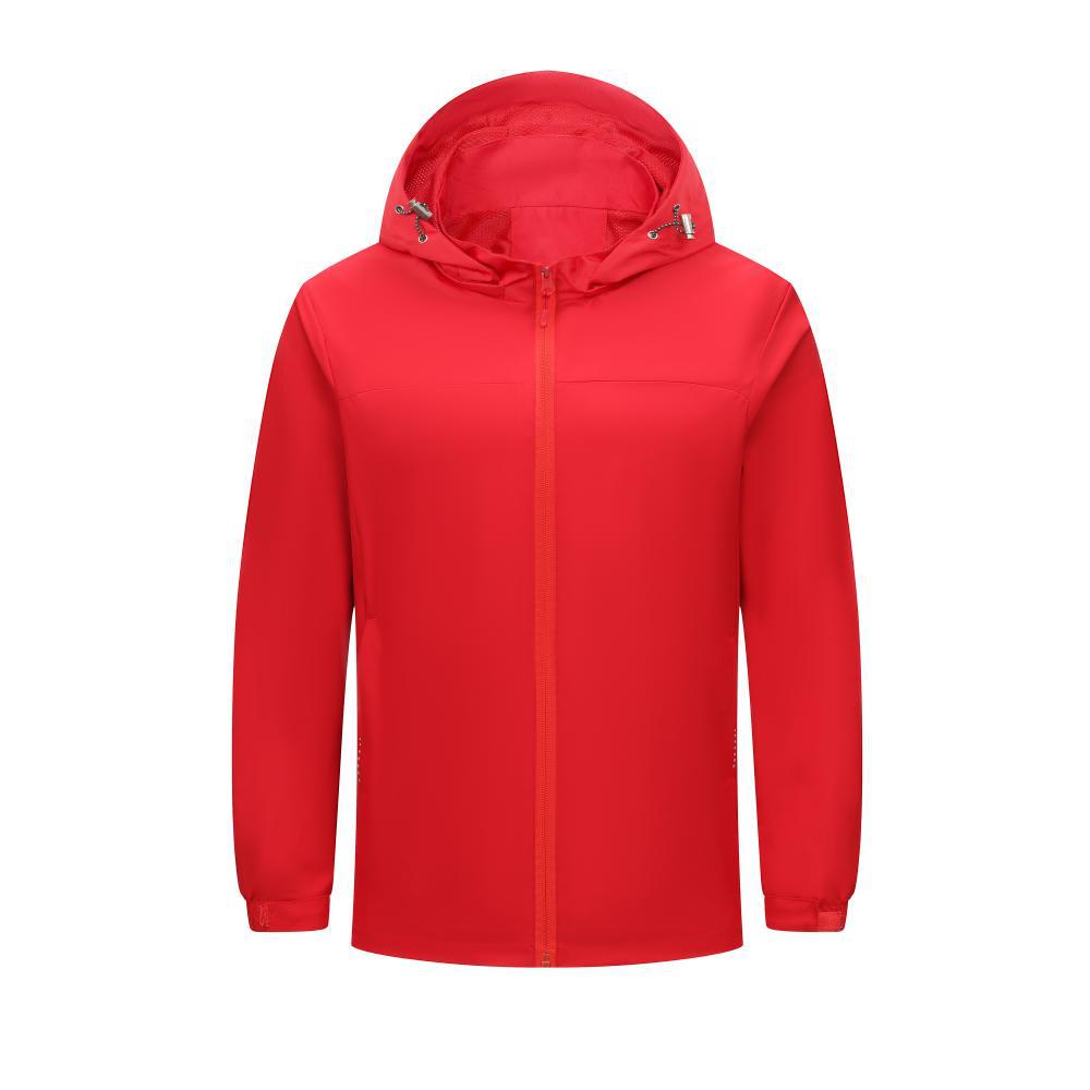 Compra Chaqueta informal fina con capucha para exteriores, resistente al viento y a la lluvia, para montañismo, chaqueta de grupo, ropa de trabajo, con logotipo estampado. al por mayor en Joom.pro
