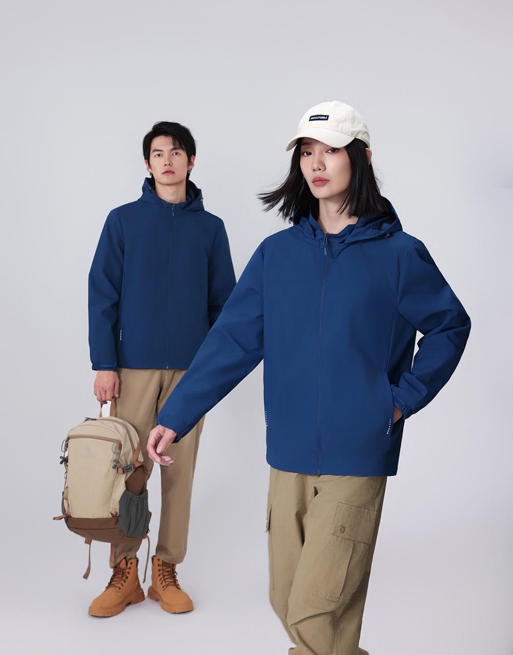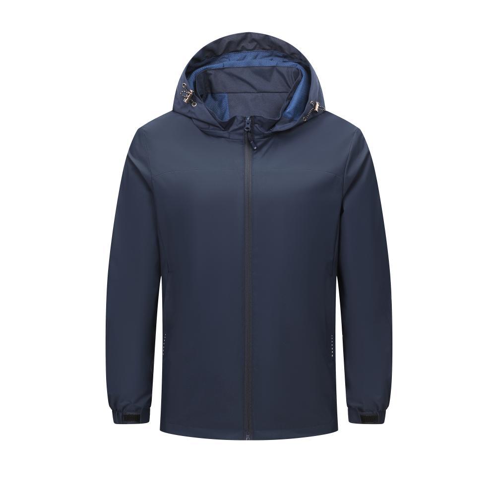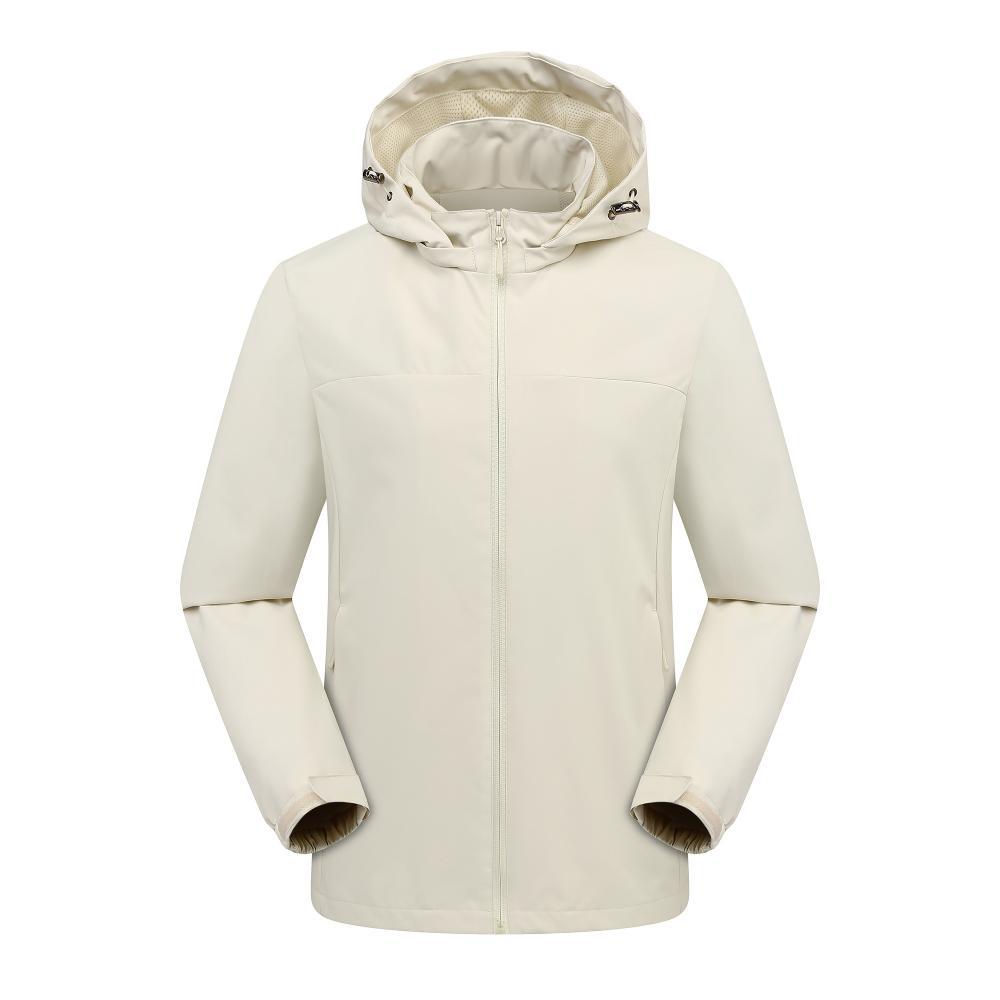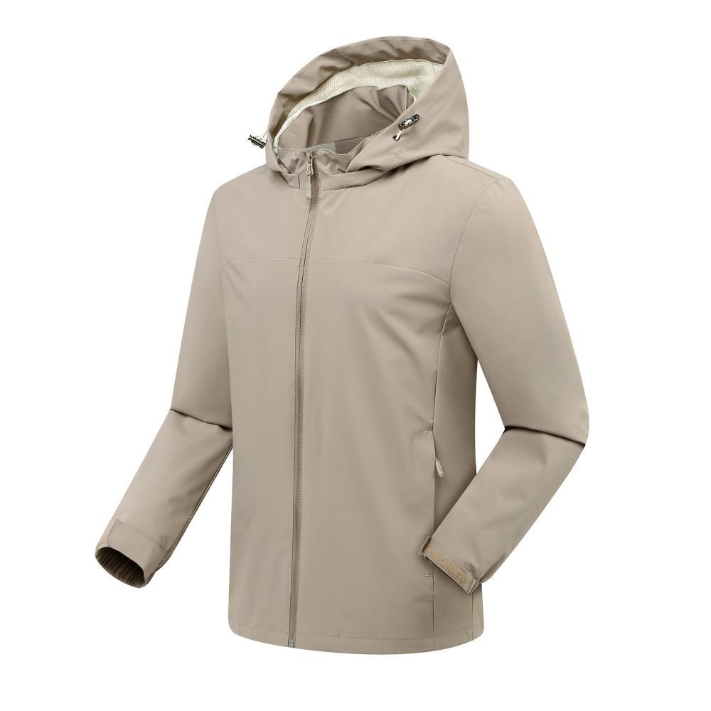 Compra Chaqueta informal fina con capucha para exteriores, resistente al viento y a la lluvia, para montañismo, chaqueta de grupo, ropa de trabajo, con logotipo estampado. al por mayor en Joom.pro