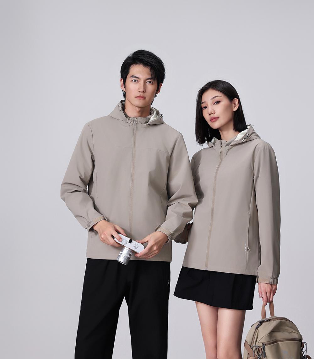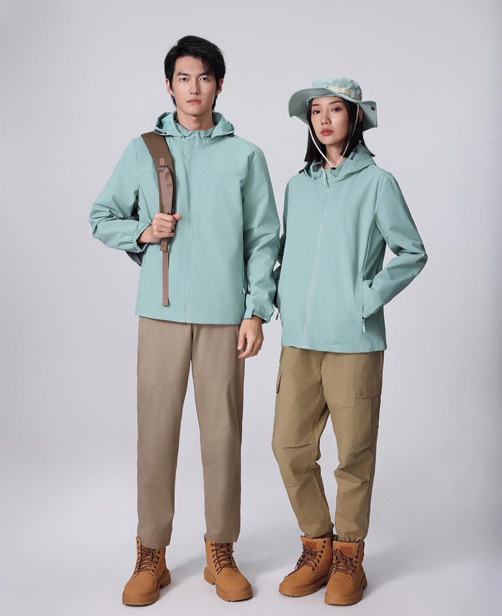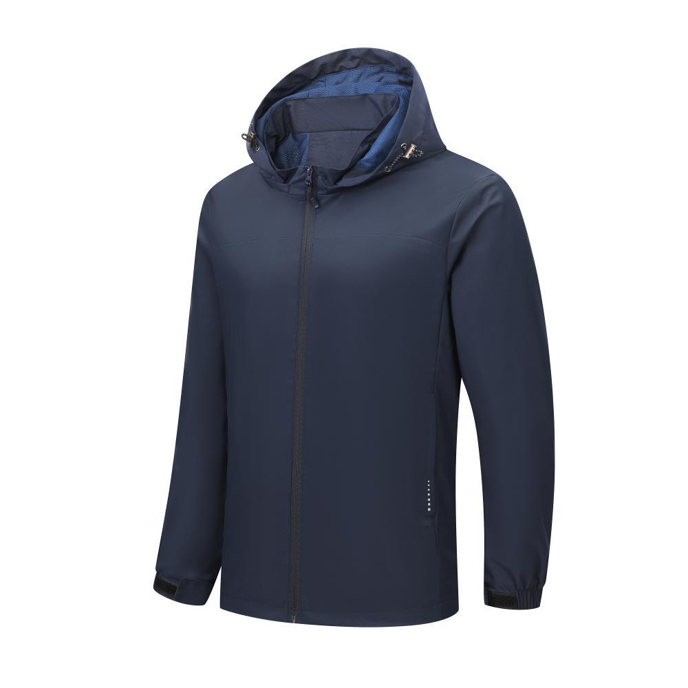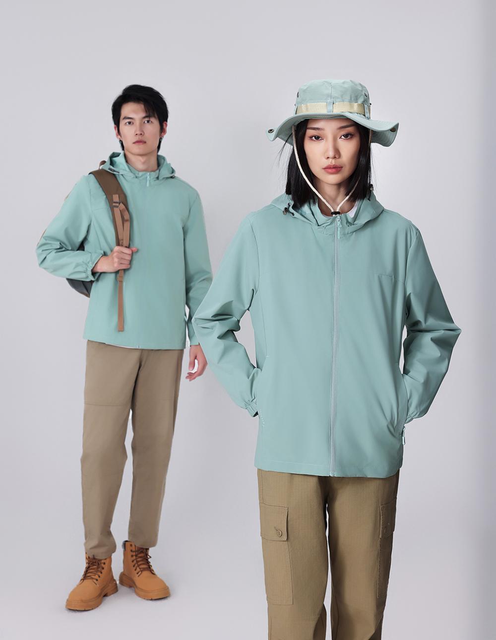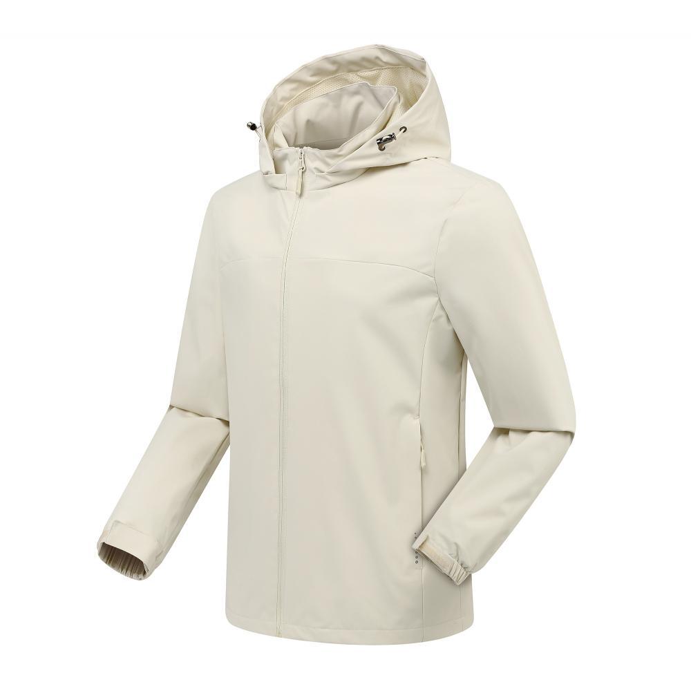 Compra Chaqueta informal fina con capucha para exteriores, resistente al viento y a la lluvia, para montañismo, chaqueta de grupo, ropa de trabajo, con logotipo estampado. al por mayor en Joom.pro