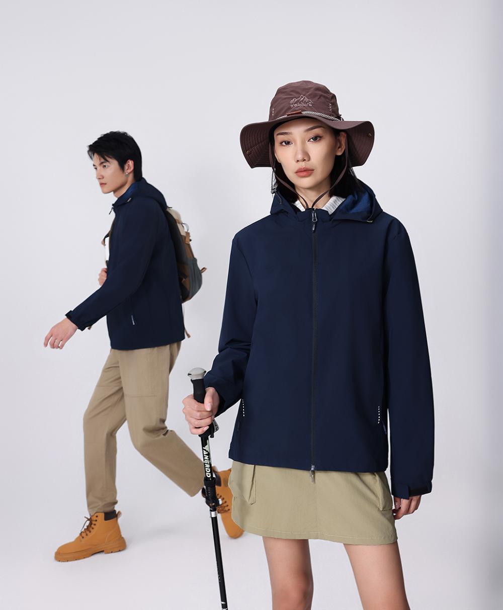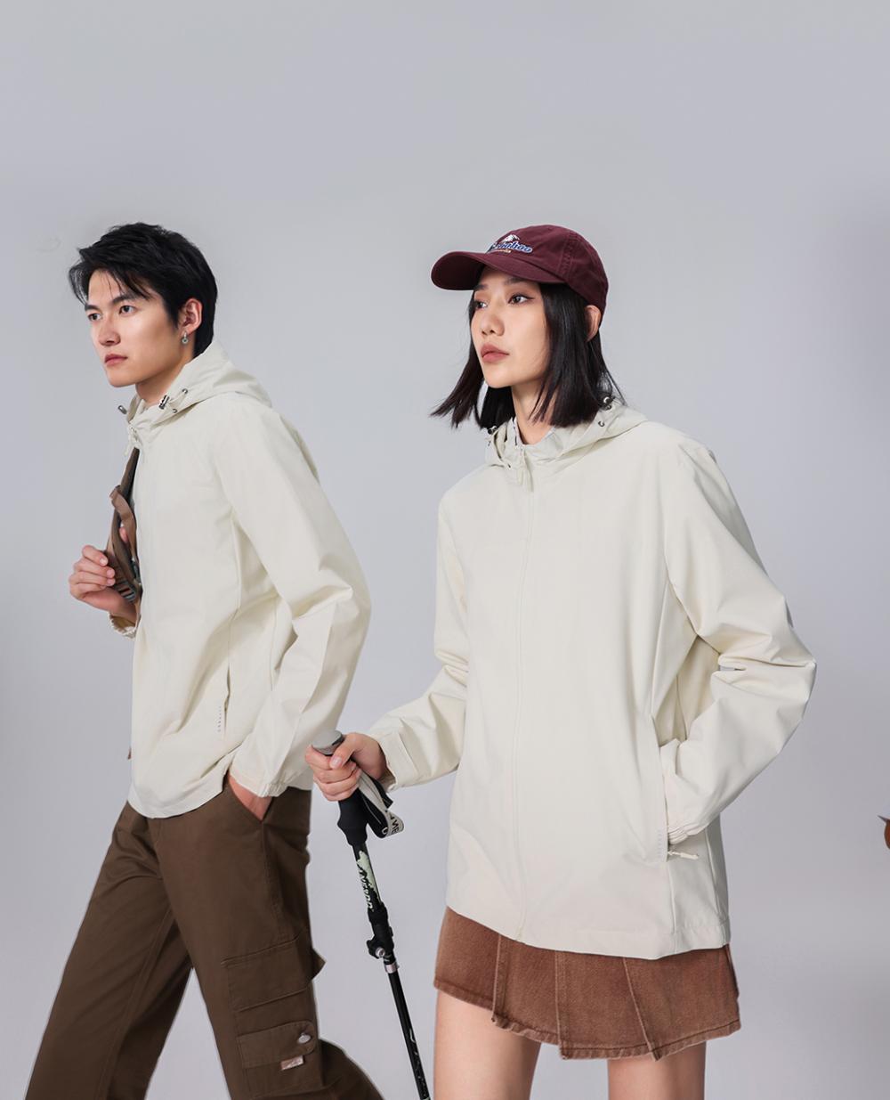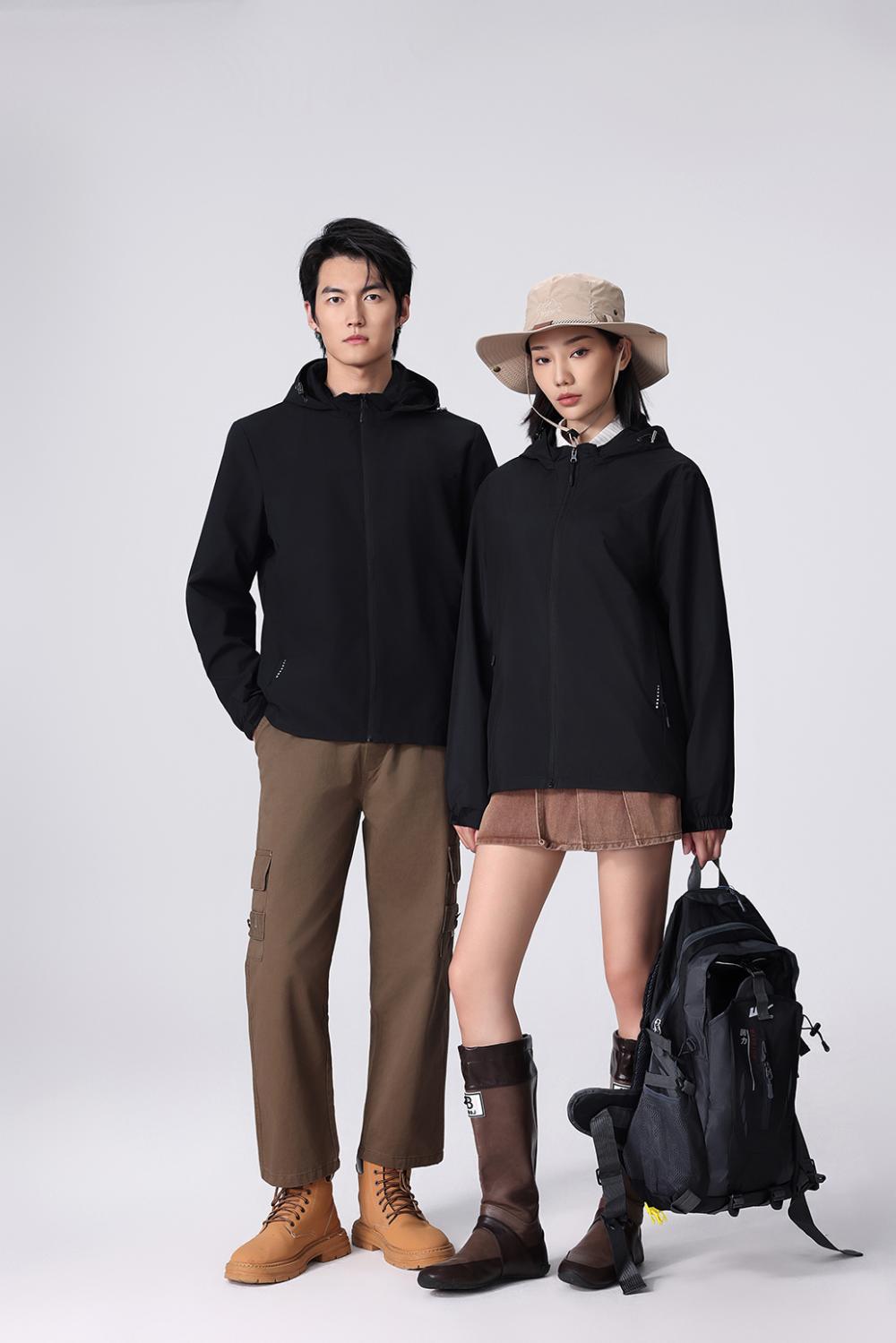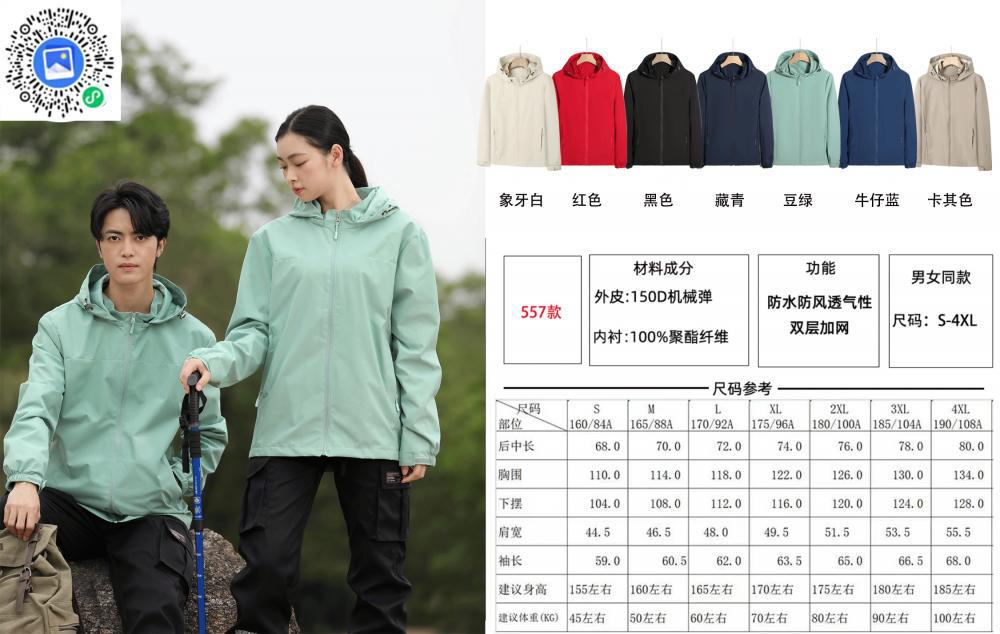 Compra Chaqueta informal fina con capucha para exteriores, resistente al viento y a la lluvia, para montañismo, chaqueta de grupo, ropa de trabajo, con logotipo estampado. al por mayor en Joom.pro
