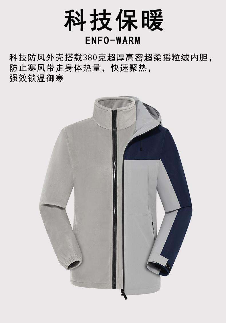 Chaqueta de trabajo impermeable desmontable tres en uno con forro polar y logotipo para exteriores, traje de montañismo