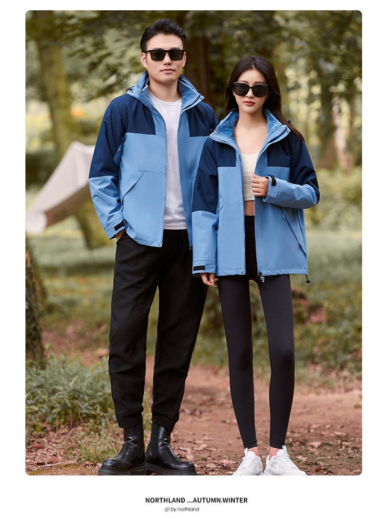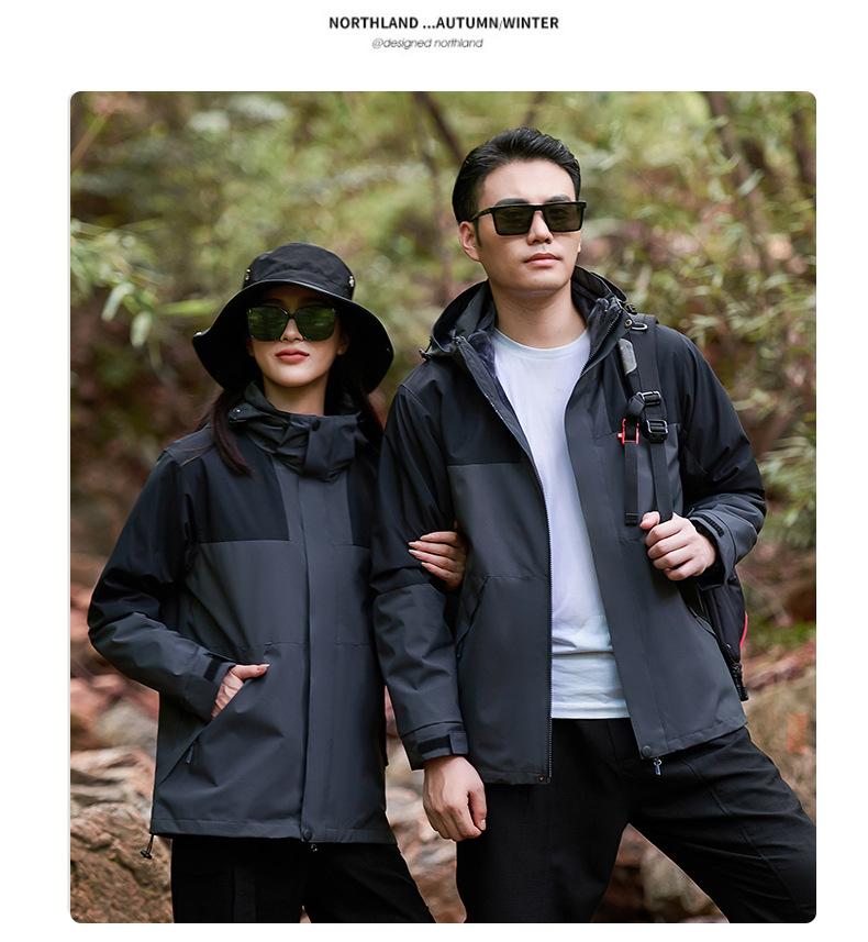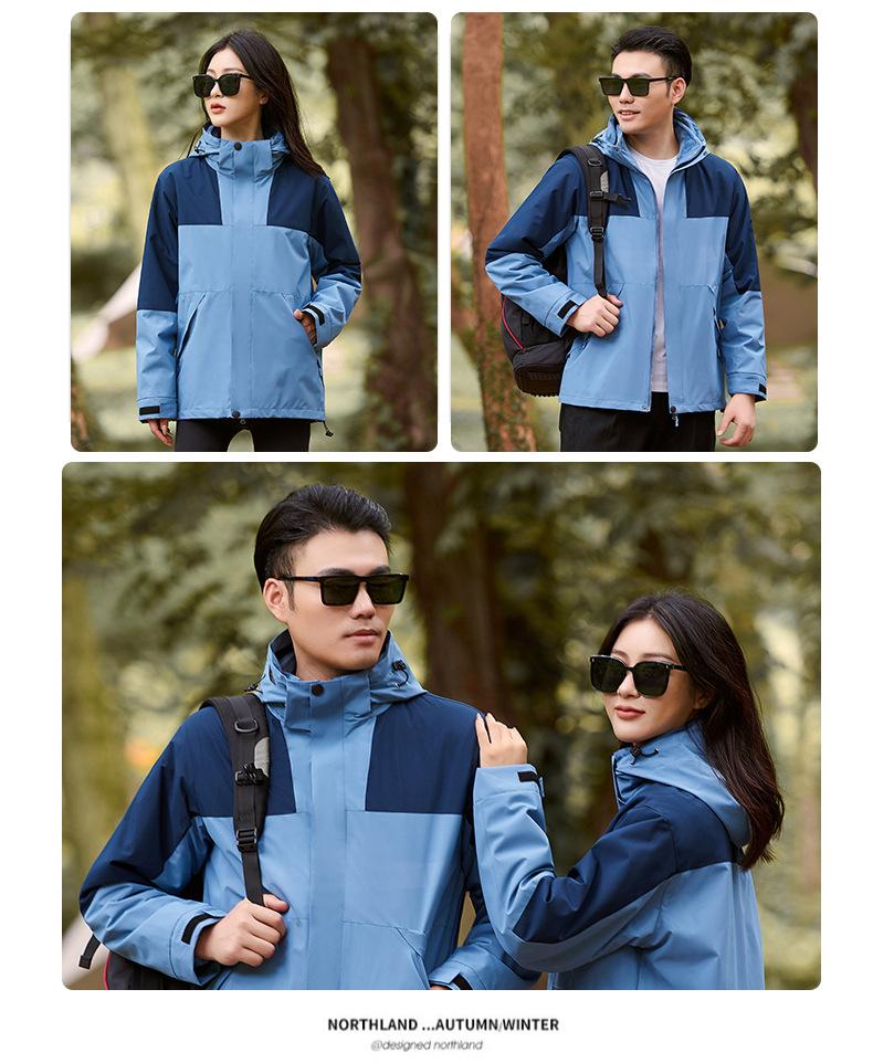 Compra Cobrar Impresión de LOGO en Ropa Ropa de Trabajo de Invierno Desmontable Tres en Uno para Hombre y Mujer Chaqueta de Viaje Cortavientos con Forro Polar al por mayor en Joom.pro