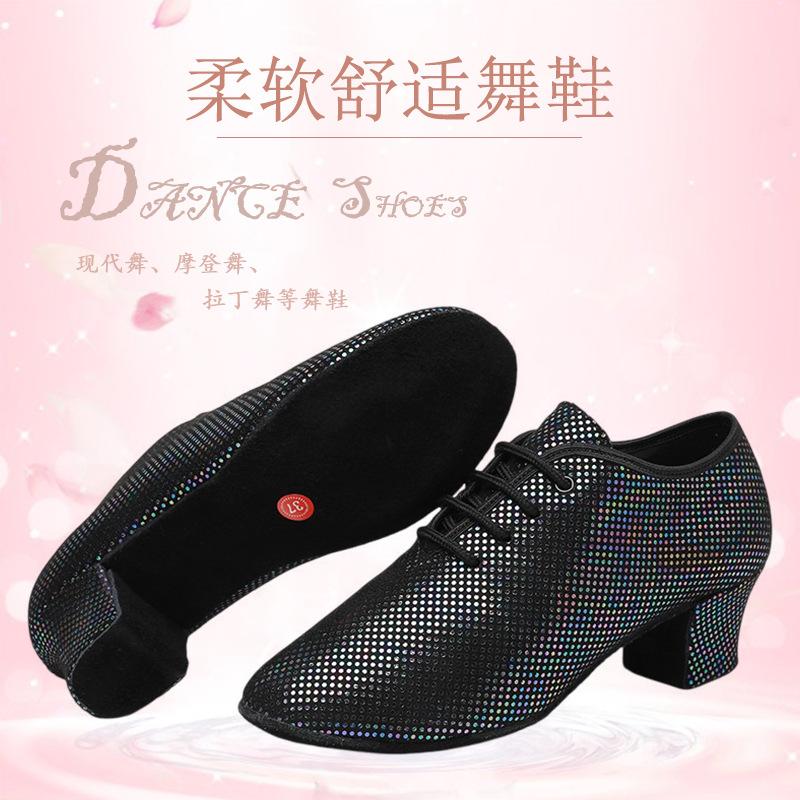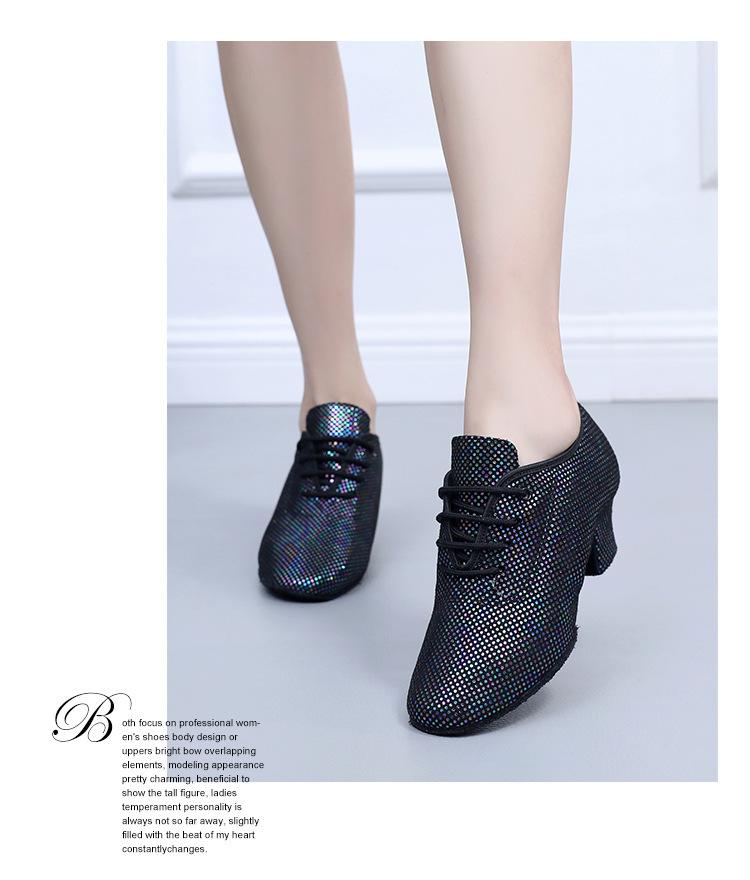 Zapatos de baile para mujer, venta al por mayor, primavera y otoño 2025, zapatos profesionales de ejercicio de suela blanda, zapatos de baile negros, zapatos de baile latino