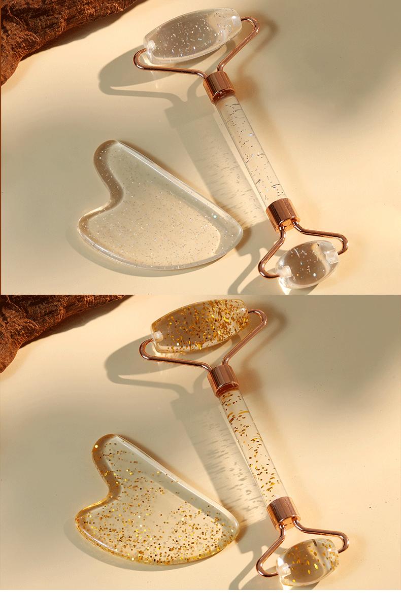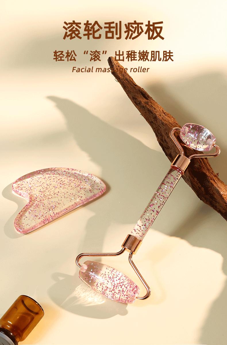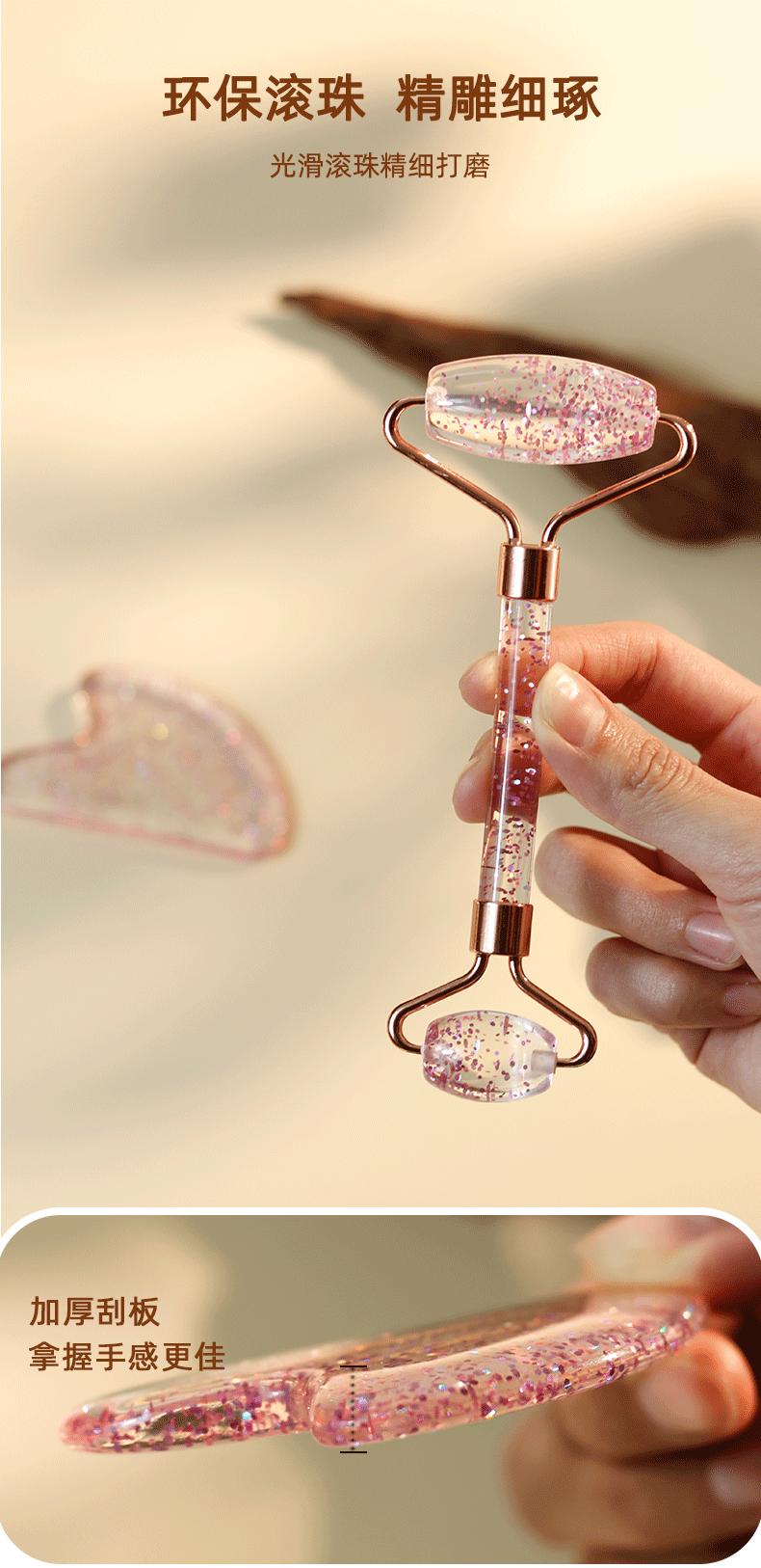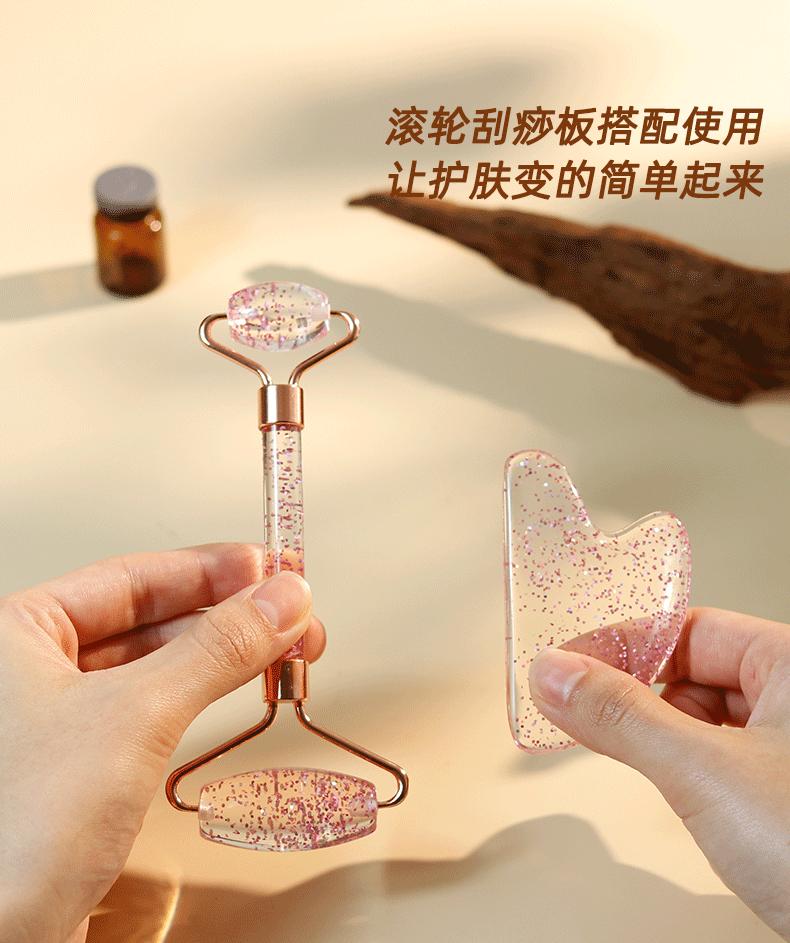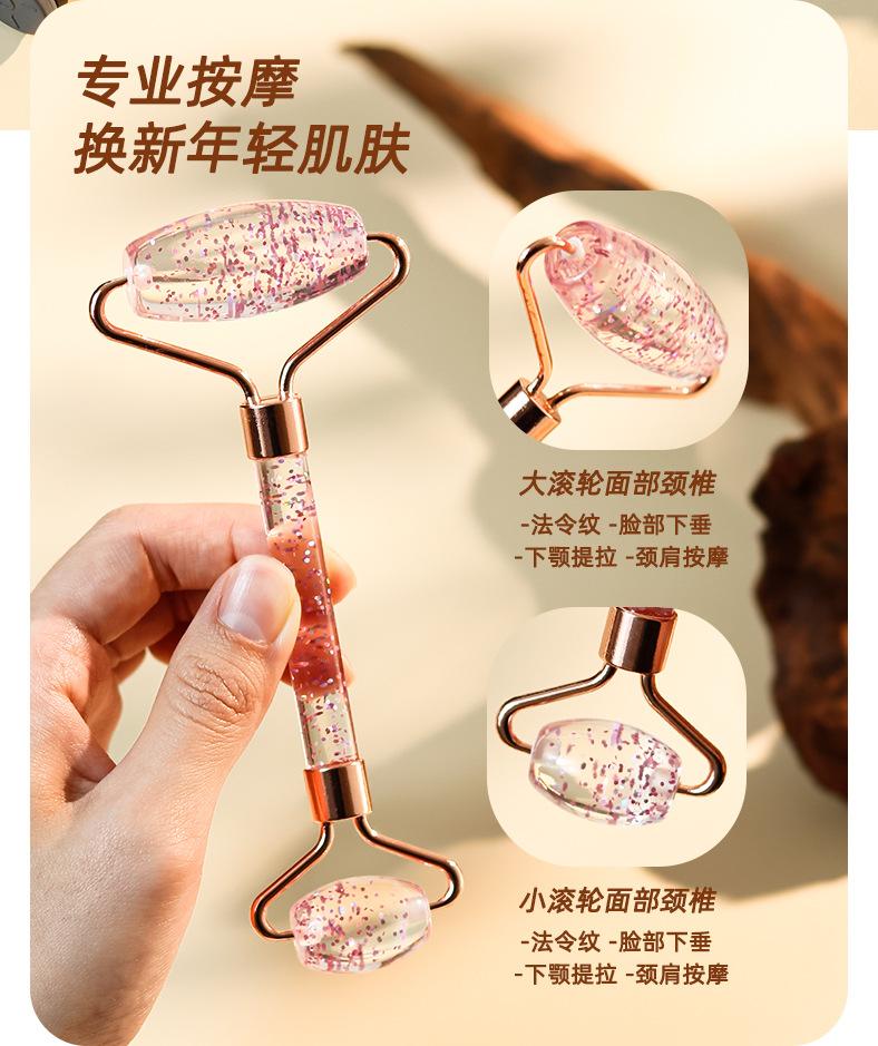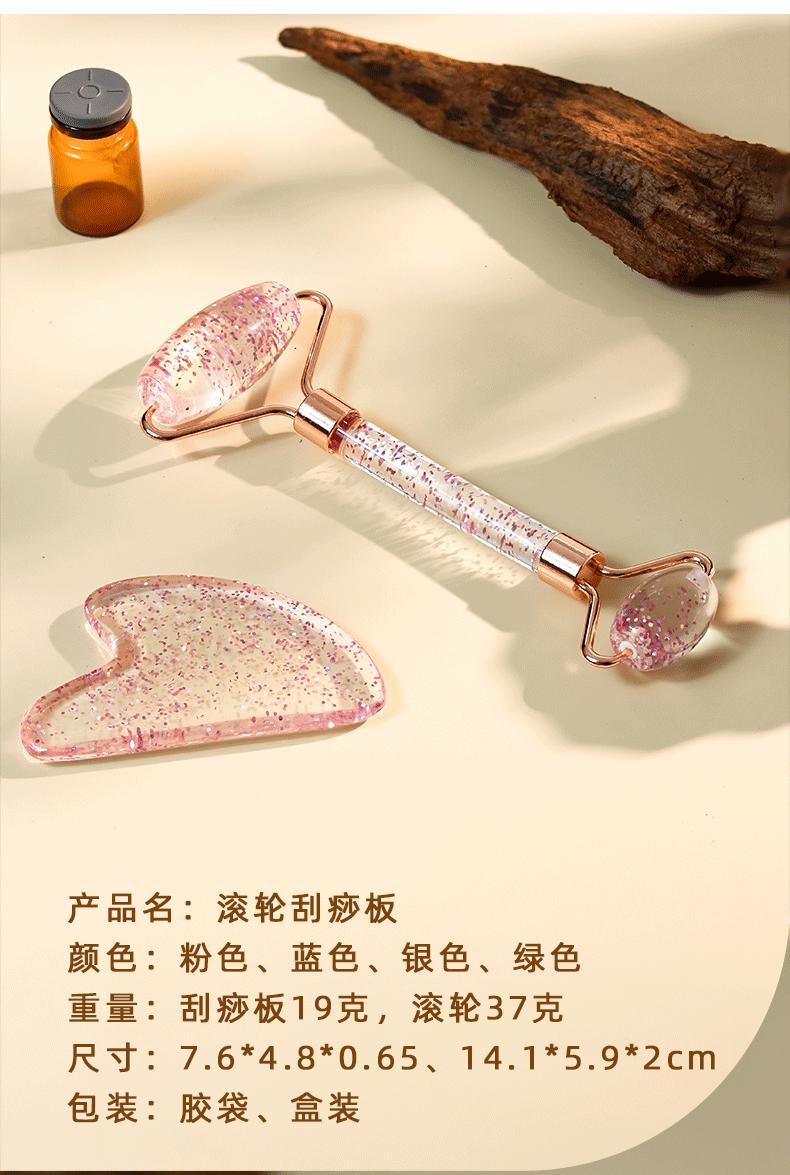 Rodillo raspador con purpurina, venta al por mayor de fábrica, masajeador facial y corporal sin jade, traje de masaje de belleza meridiano