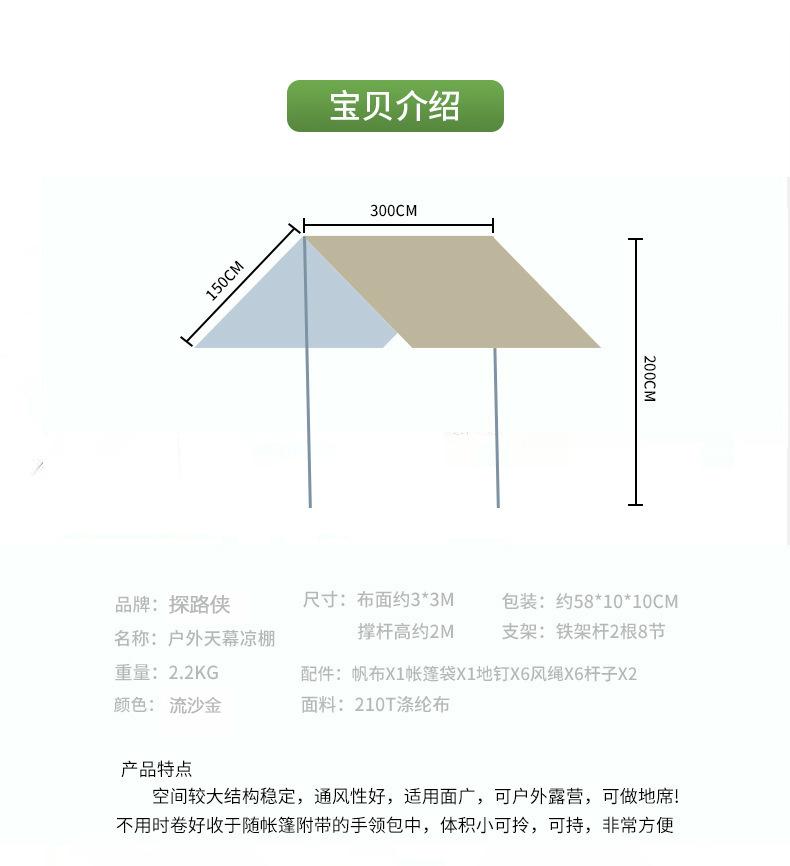 Free accessories: 4 floor nails + 4 windproof ropes + handbag
