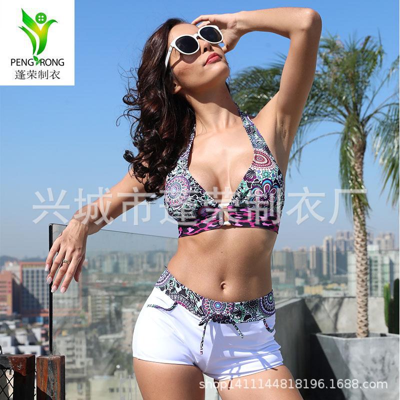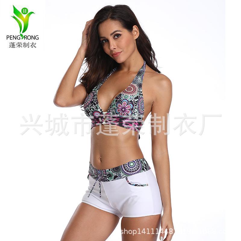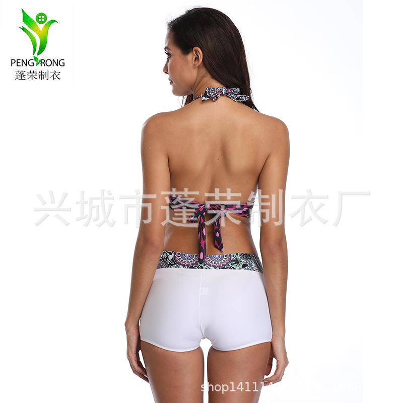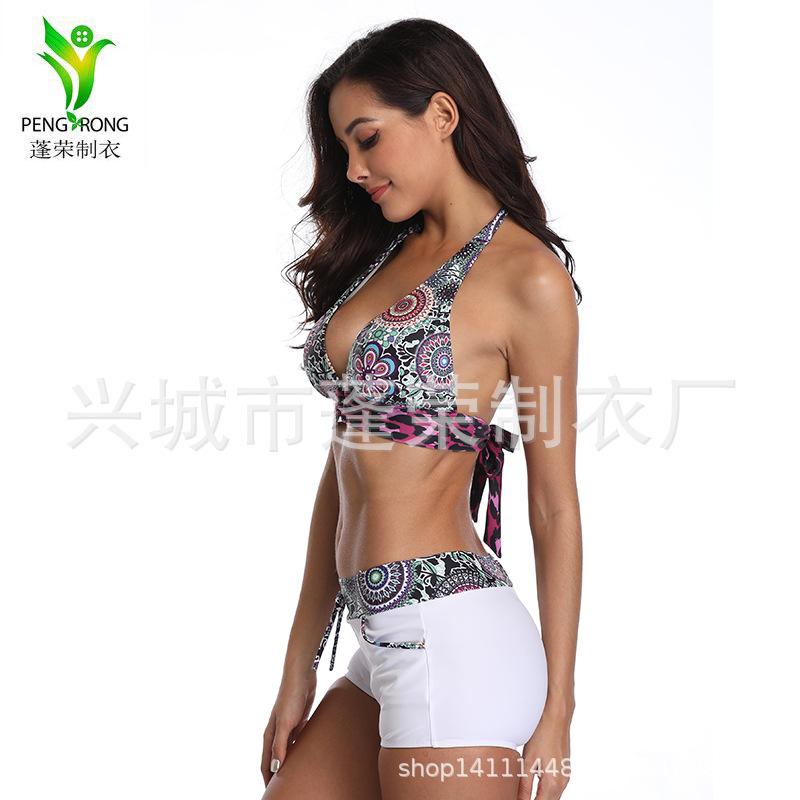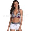 Nuevo Bikini Sexy Europeo y Americano de Amazon Traje de Baño Dividido de Talla Grande con Estampado y Lazo Halter para Mujer
