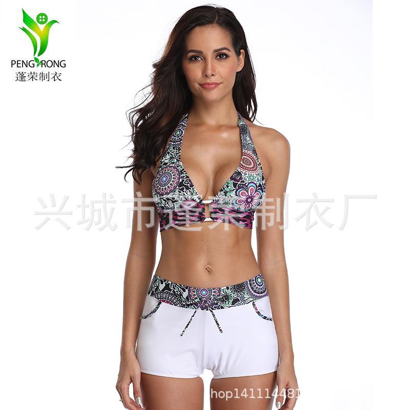 Compra Nuevo Bikini Sexy Europeo y Americano de Amazon Traje de Baño Dividido de Talla Grande con Estampado y Lazo Halter para Mujer al por mayor en Joom.pro