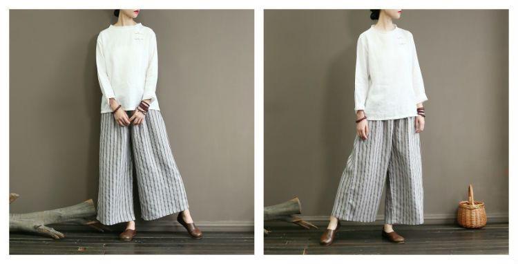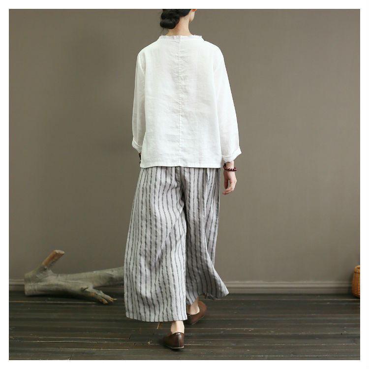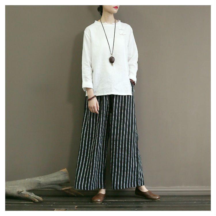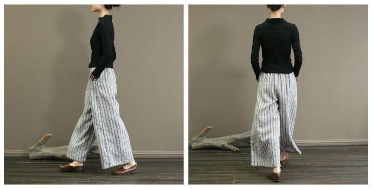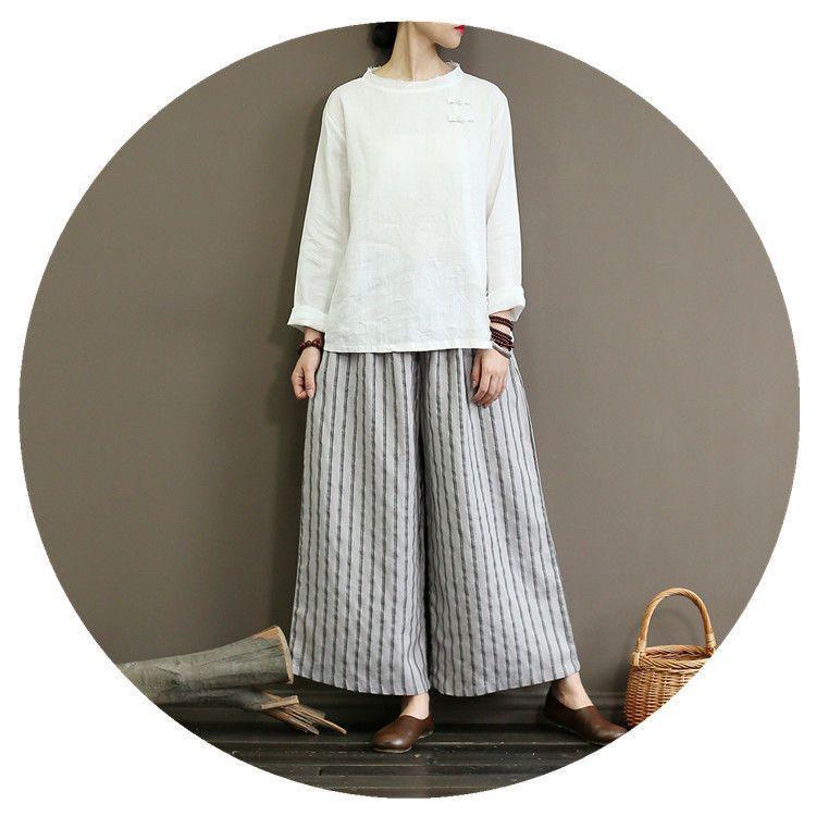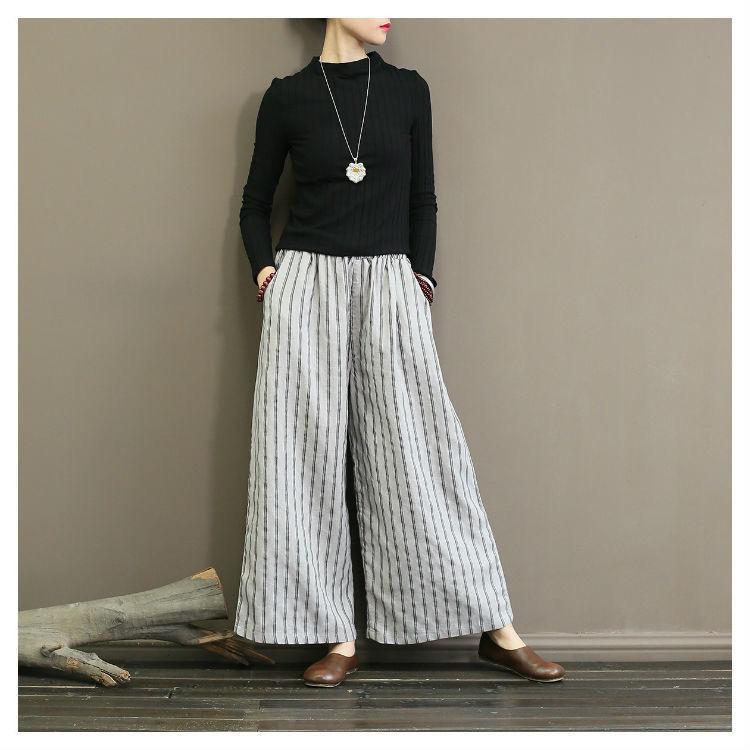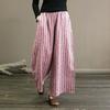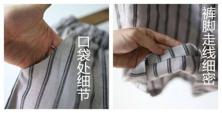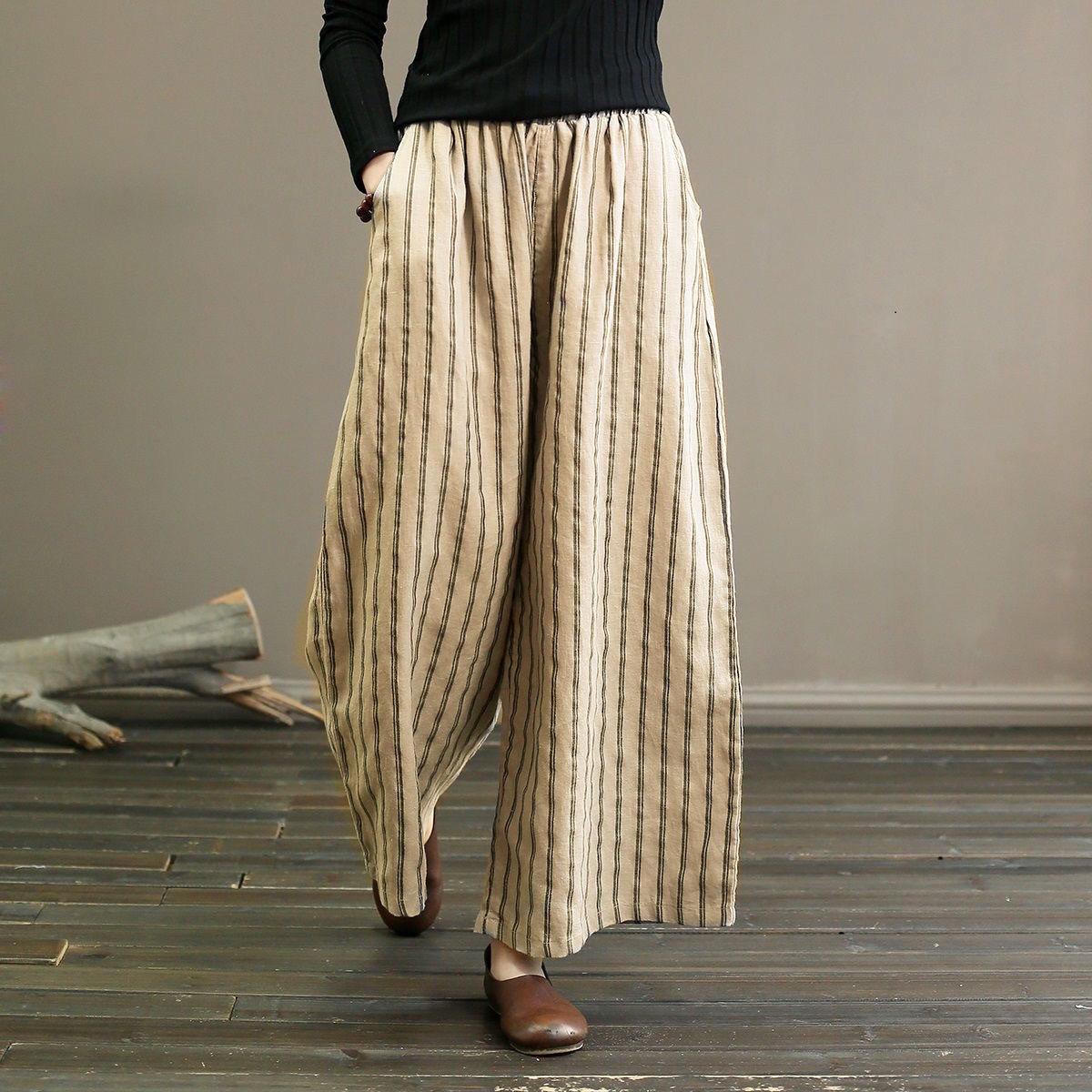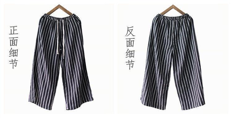 Pantalones anchos a rayas de algodón y lino retro de comercio exterior 2023, pantalones rectos casuales ajustados de verano, una generación de cabello