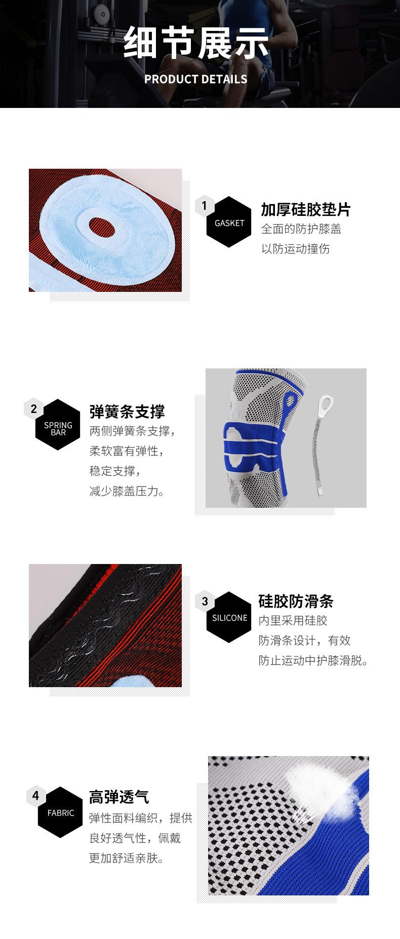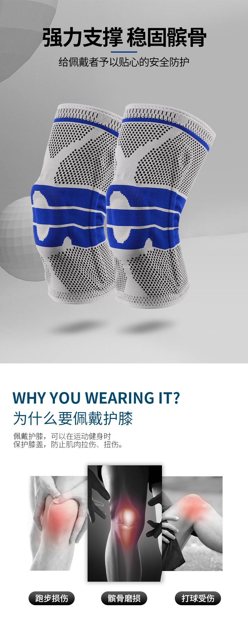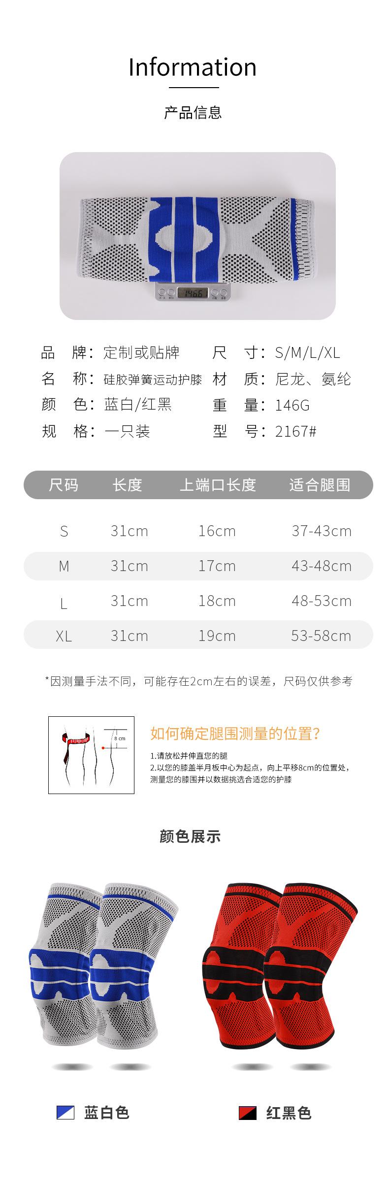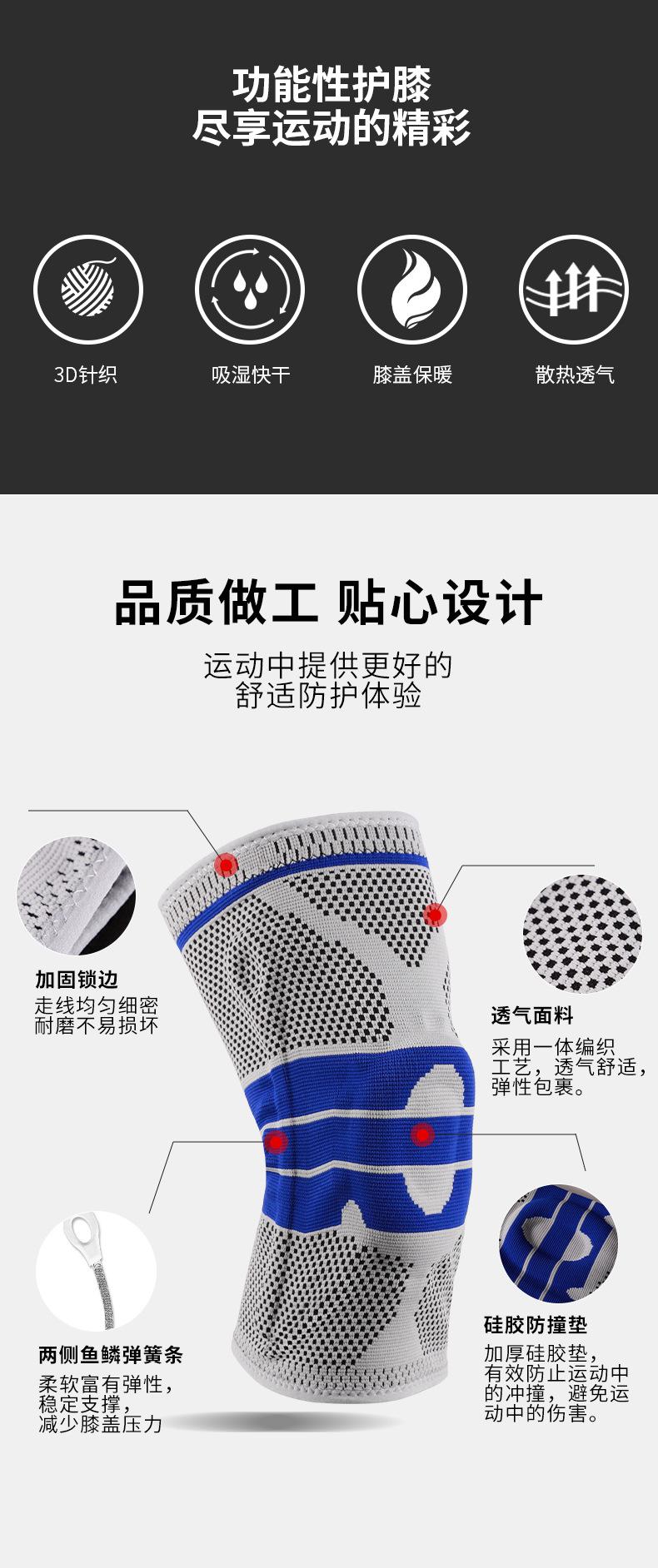 Rodilleras de silicona gruesa con soporte de resorte, nuevas y transfronterizas, para deportes de fitness, protección contra la presión y para correr, venta al por mayor