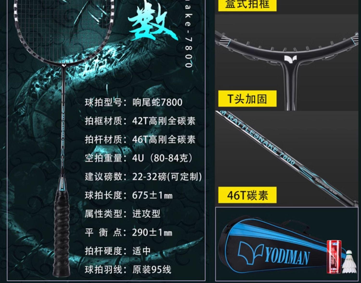 Rattlesnake 7900 professional offensive 4u + large bag + y9 balls (2 pieces)-yodiman-ydm95