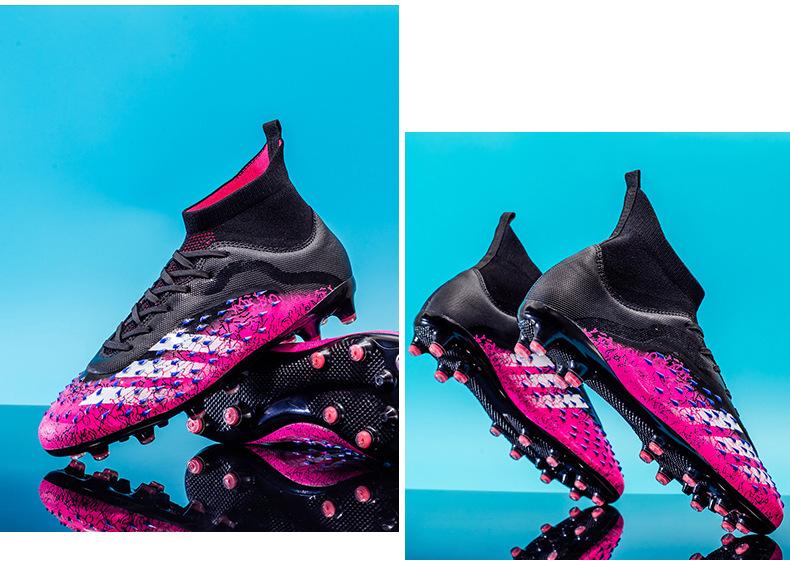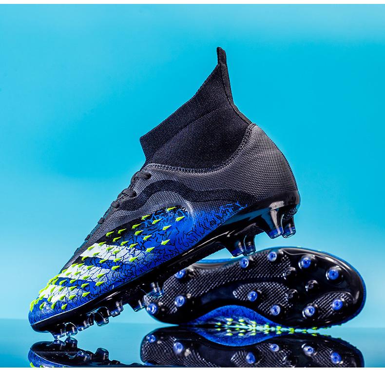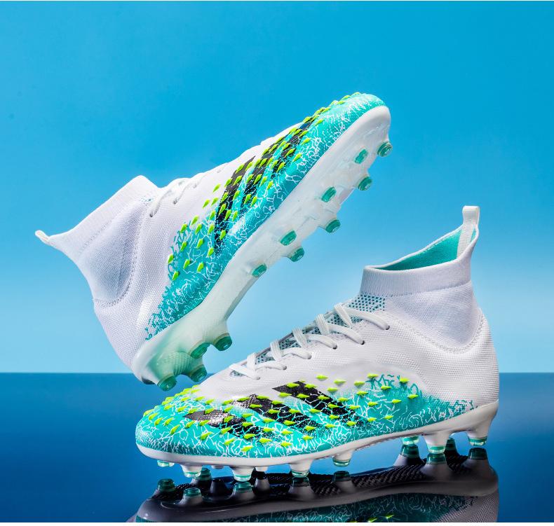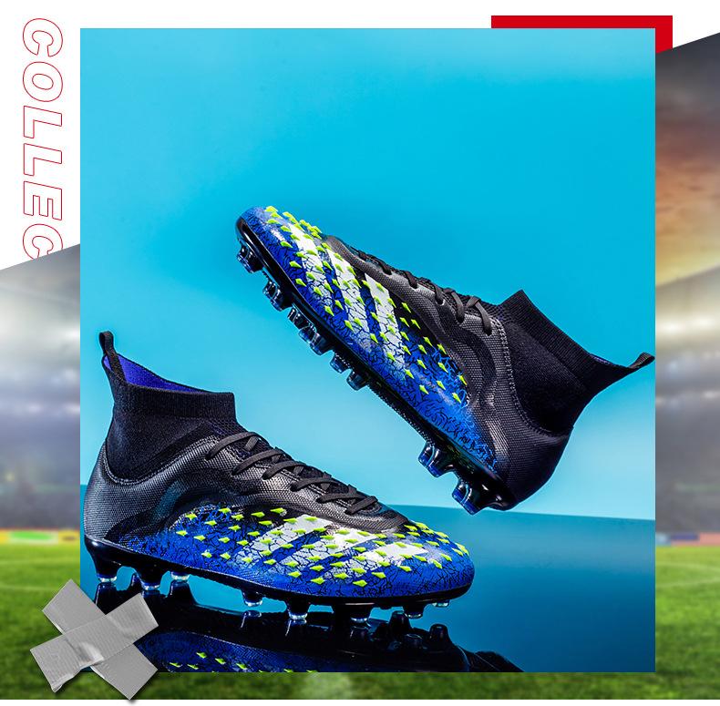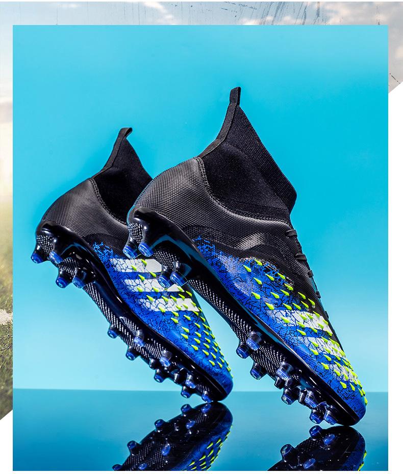 | Botas de fútbol para hombres y mujeres, adolescentes, estudiantes de secundaria, zapatos de entrenamiento y competición AG, clavos largos, césped humano, resistentes a los impactos, zapatos de fútbol resistentes al desgaste |