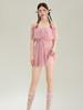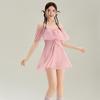 Traje de baño de una pieza pequeño y fresco para mujer 2025 nuevo estilo hada color sólido traje de baño de alta gama Mori traje de baño simple al por mayor