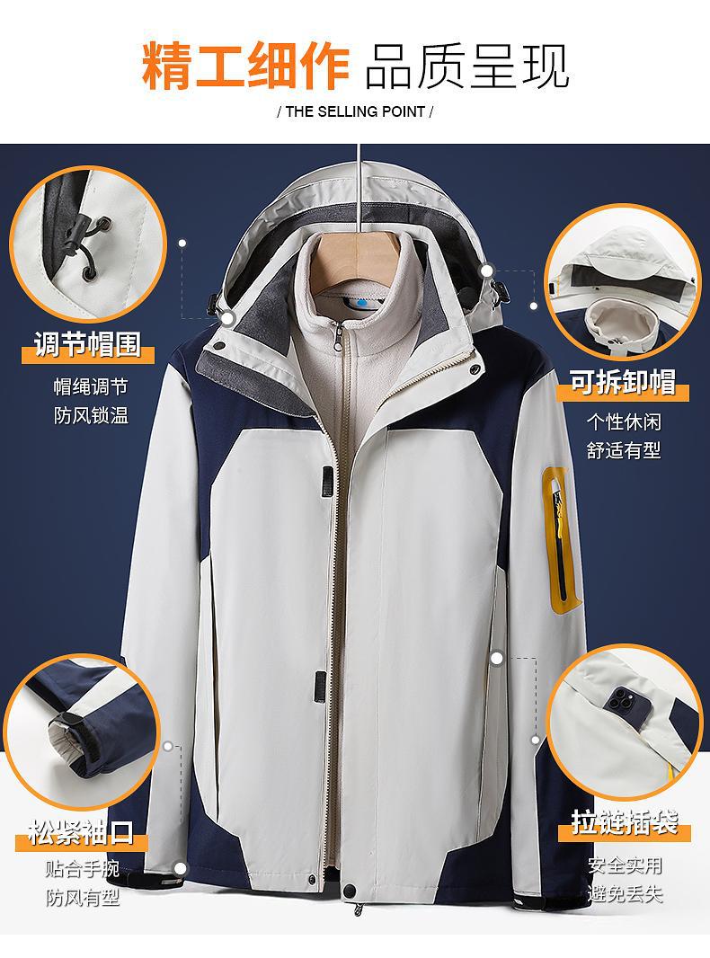Nueva chaqueta cortavientos desmontable tres en uno con forro polar y logotipo de asalto para otoño e invierno para montañismo al aire libre.