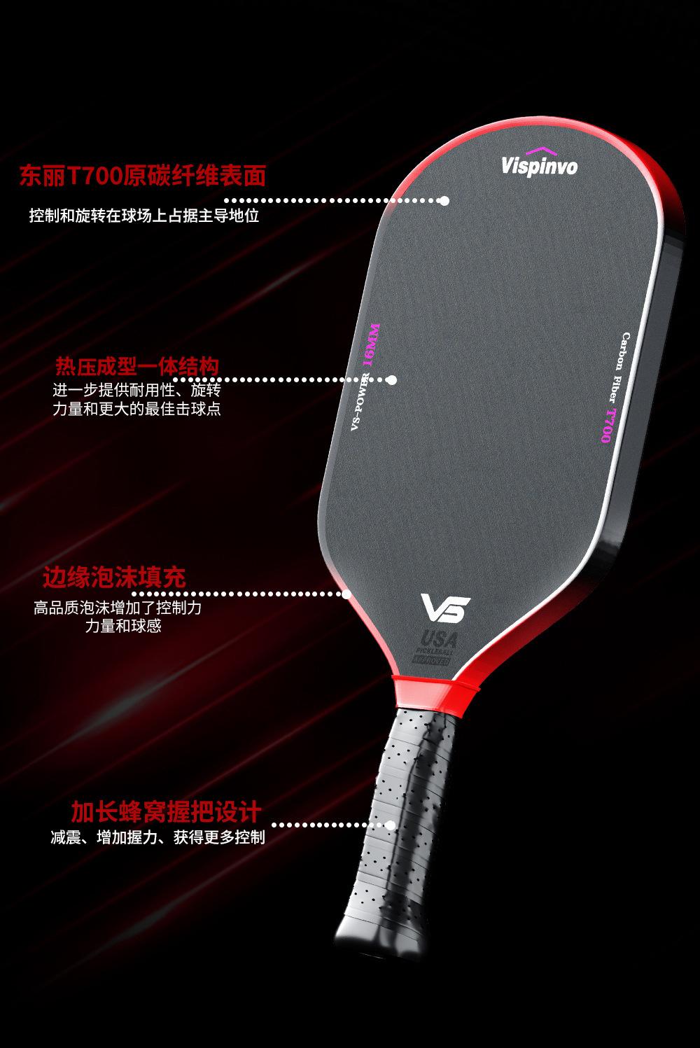 Vispinvo Fibra de carbono Toray T700 Pala Peak patrón de tela pickleball prensado en caliente pala competitiva