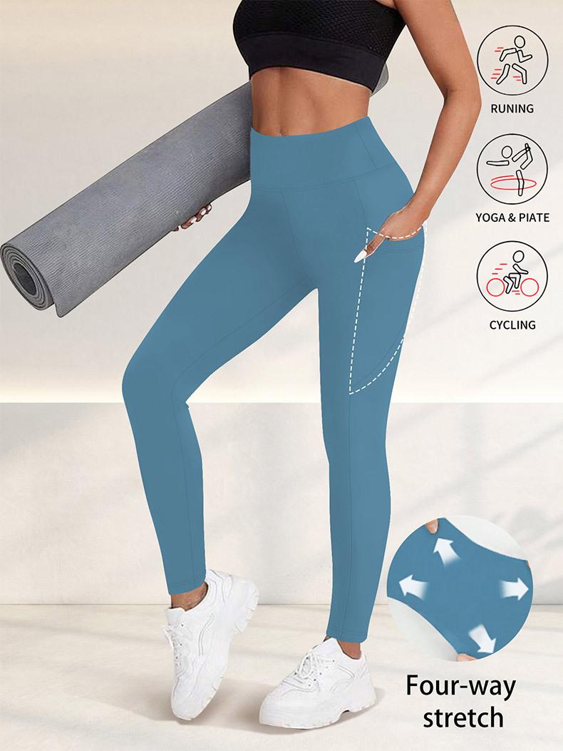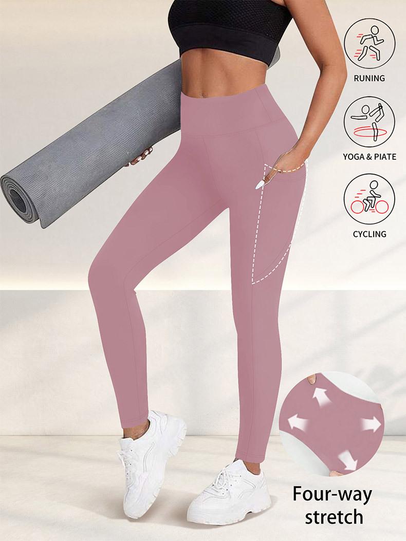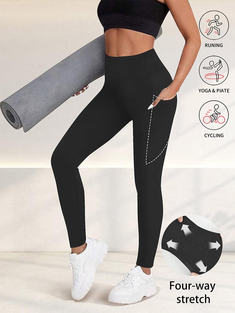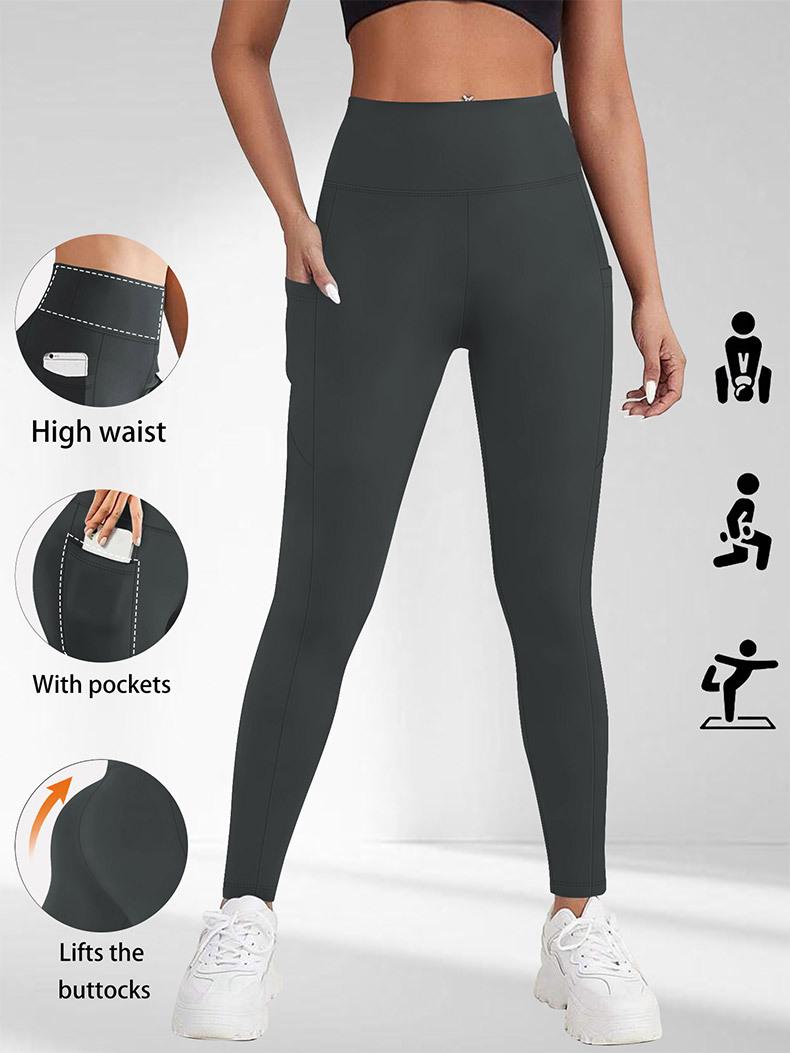 Pantalones de Yoga Transfronterizos Europeos y Americanos Primavera y Verano Cintura Alta Levantamiento de Cadera Slim Fitness Bolsillo Lateral Leggings Deportivos para Mujer en stock