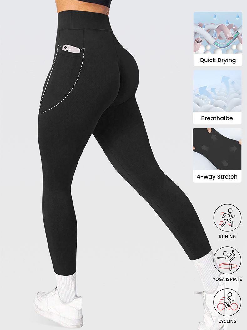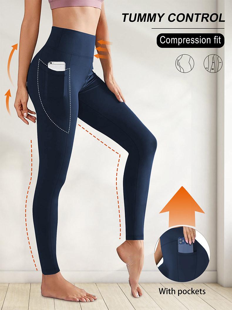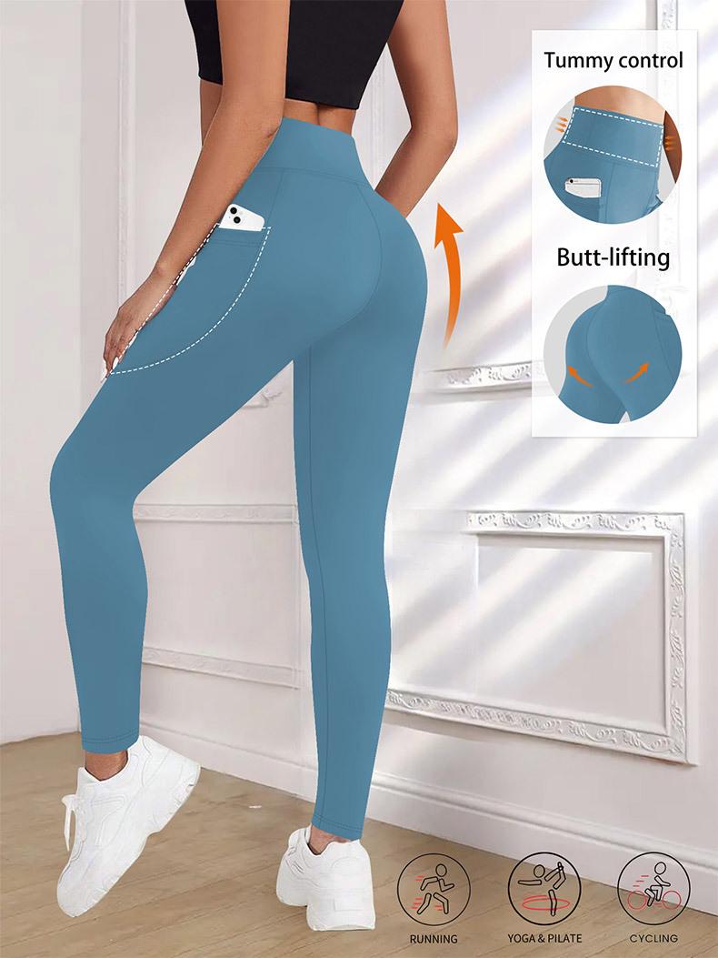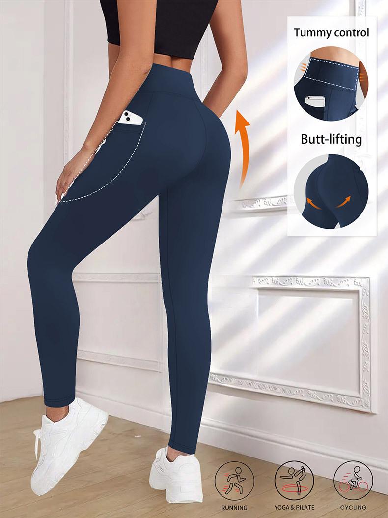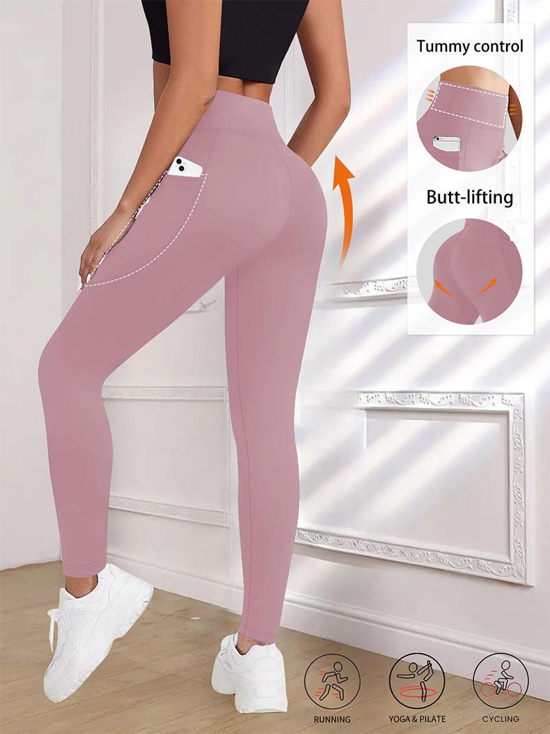 Pantalones de Yoga Transfronterizos Europeos y Americanos Primavera y Verano Cintura Alta Levantamiento de Cadera Slim Fitness Bolsillo Lateral Leggings Deportivos para Mujer en stock